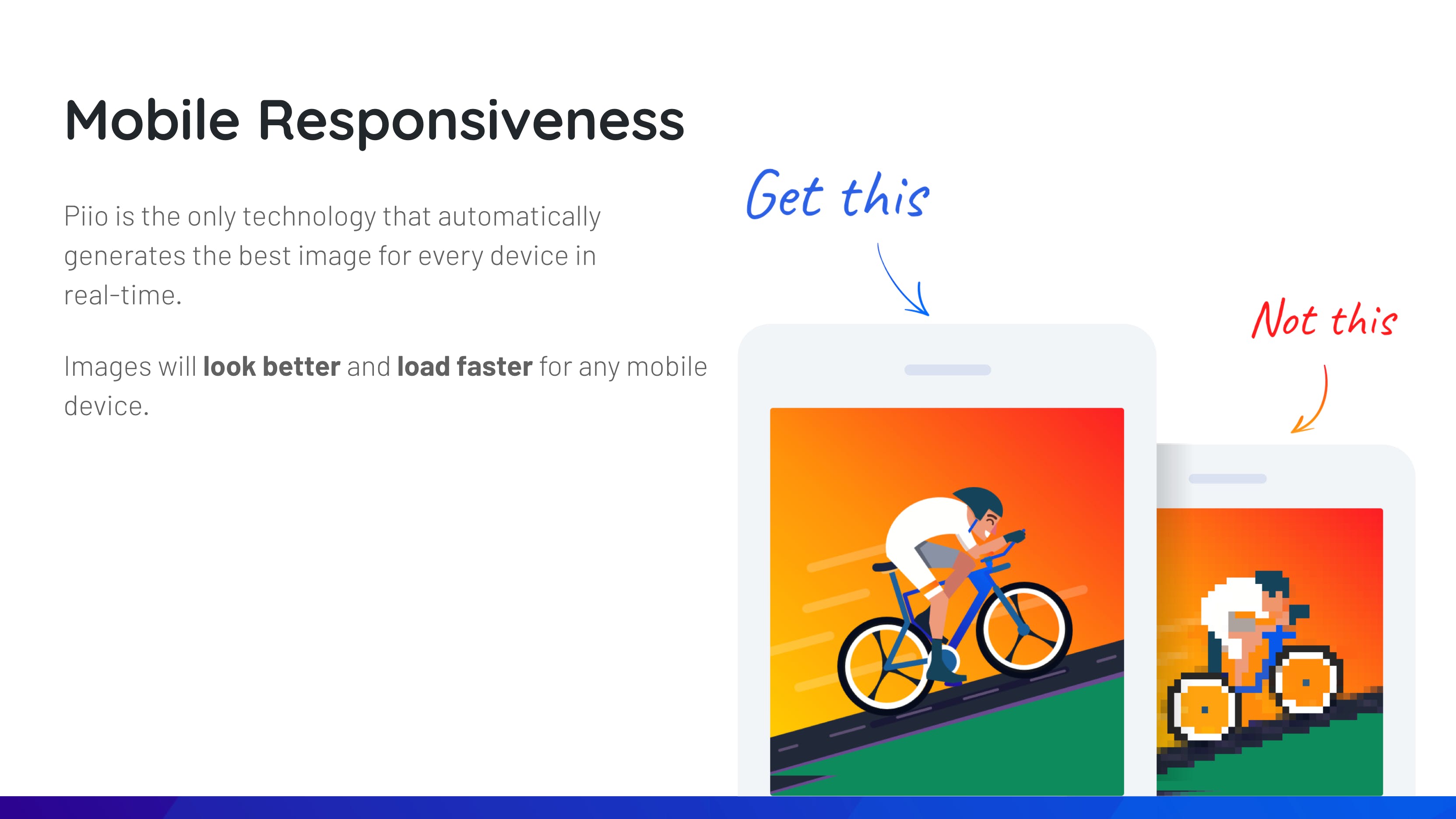 Piio automatically generates real-time responsive images for your website visitors and delivers them at maximum speed. (lazy loading feature included) Piio automatically understands the context of your users and provide the best possible experience for them. Forget about resizing or optimizing images for mobile. * Extremely easy setup like any other lazy loading library * No need to change storage * No need to use URL parameters * No maintenance after integration