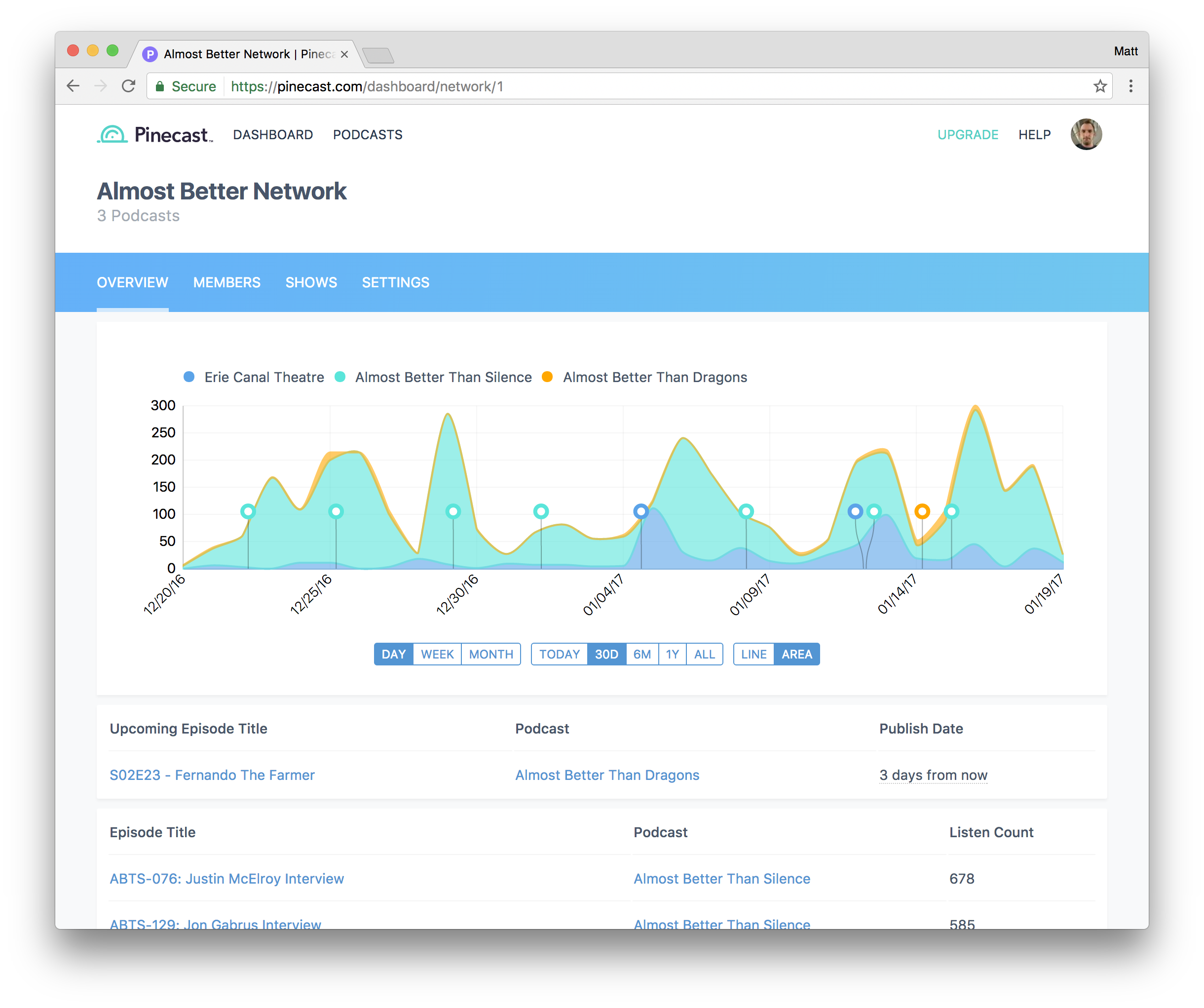 Pinecast makes it quick and easy to start a podcast with everything you'll need to grow an audience. Our $5/mo plan has "unlimited everything," meaning you can scale from a hundred listeners to tens of thousands of listeners without worrying about cost. A Tip Jar allows your listeners to contribute to your show, either one time or recurring monthly. You can get started with Pinecast for free with no credit card required, forever. Upgrade when you're ready, and downgrade back to a free account at any time. There's no nonsense and no catch. Pinecast is fully open source, made with love. We're podcasters ourselves, and want to build the best damn podcast host out there.