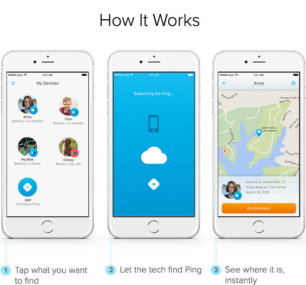 What's different about Ping? > Bluetooth trackers ONLY work within 35ft of your phone > Ping uses Bluetooth, Cellular, and GPS to locate next door or anywhere in the world > Any farther away and they require another user in their network to physically be within 35ft for you to be notified of it's location. > It’s that fast and simple