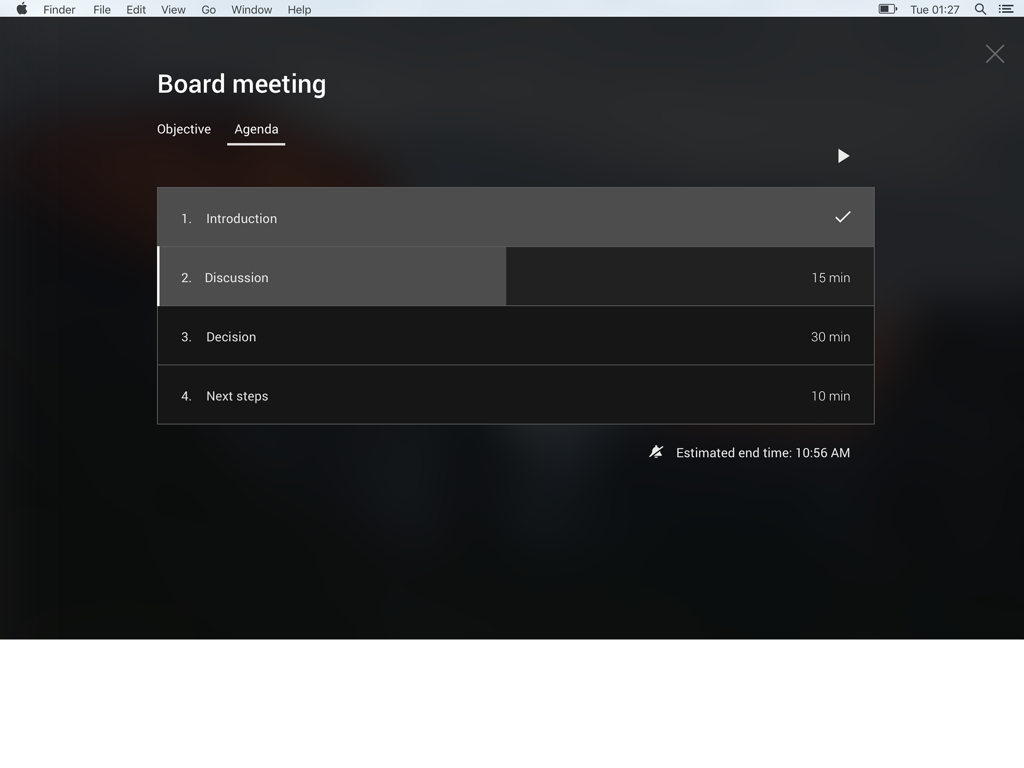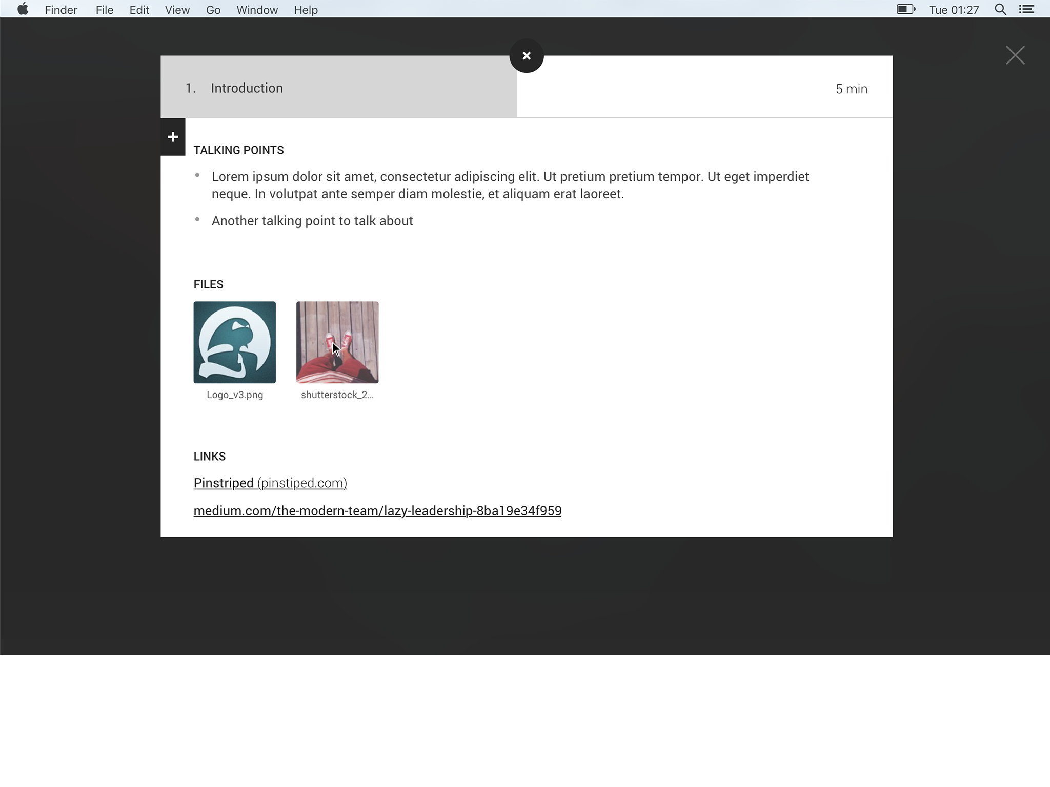 Pinstriped is the easy way to run shorter and more focused meetings. An agenda structured to keep you moving forward and closing tasks during your meeting. Files and links are located under the related agenda item, which leaves your meeting only one way to go - forward. Add actions and decisions as you go. Prepare your team before the meeting and follow up with actions and decisions afterwards.