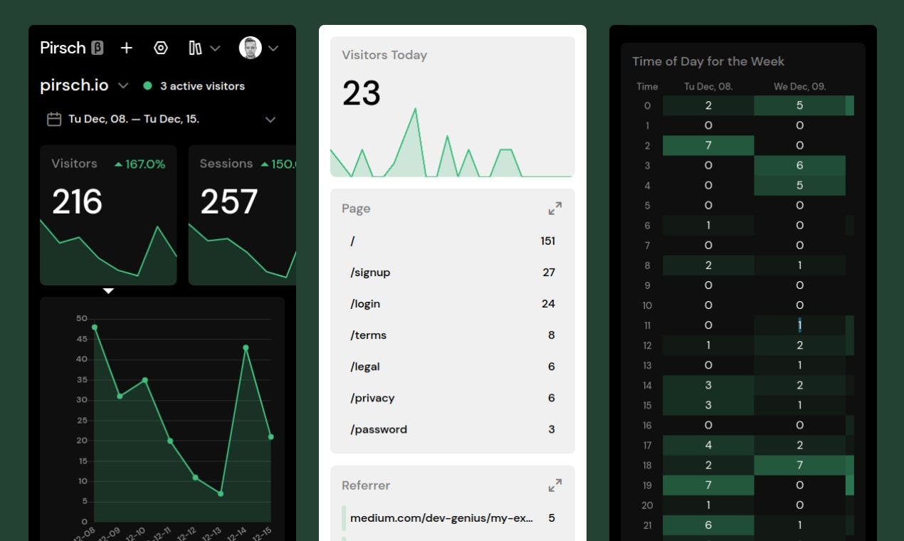 Pirsch is a simple, privacy-friendly, open-source alternative to Google Analytics free of cookies. It can easily be integrated into any website or directly into your backend. Pirsch does not collect personal information. All visits are anonymized and aggregated into meaningful statistics once per day. This ensures that we don't save individual page visits longer than 24 hours while you get the data you need. For details, you can check out the open-source core of Pirsch on GitHub: https://github.com/pirsch-analytics/pirsch