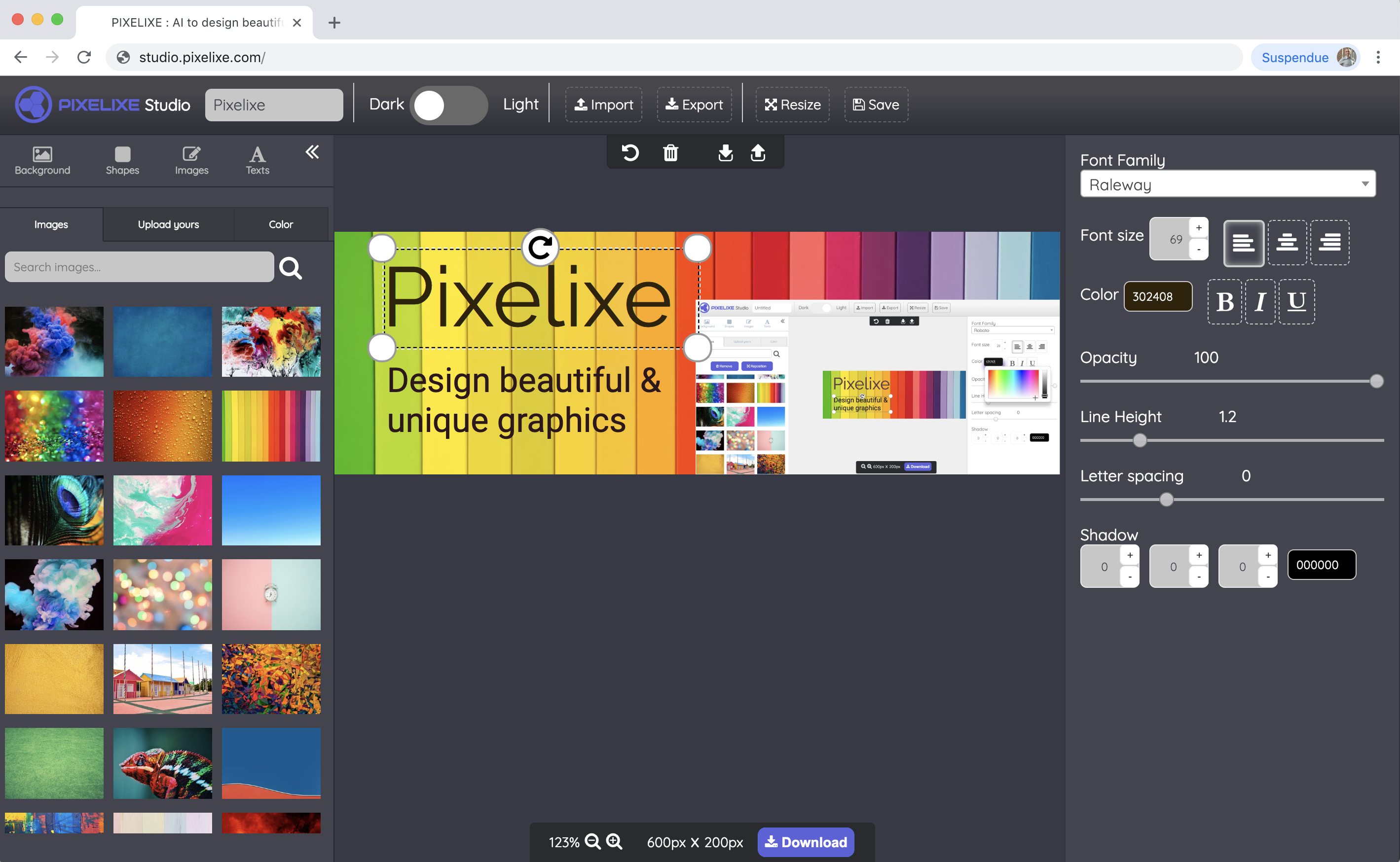 Pixelixe Studio is the perfect image creation tool to create engaging graphics and help marketers, bloggers and small businesses promoting their products and services on all digital platforms (From social media, ads, blogs and more). Conceived for non-designers (SMBs) willing to deploy simple marketing and social campaigns without spending tons of money, the studio lets anyone (especially people with absolutely no design skills) choose among a collection of 850.000 images and thousands of fonts and icons to quickly conceive beautiful and unique graphics. Users can also drop their own images and instantly download their creation, ready to be published on social media platforms and other digital marketing campaigns.