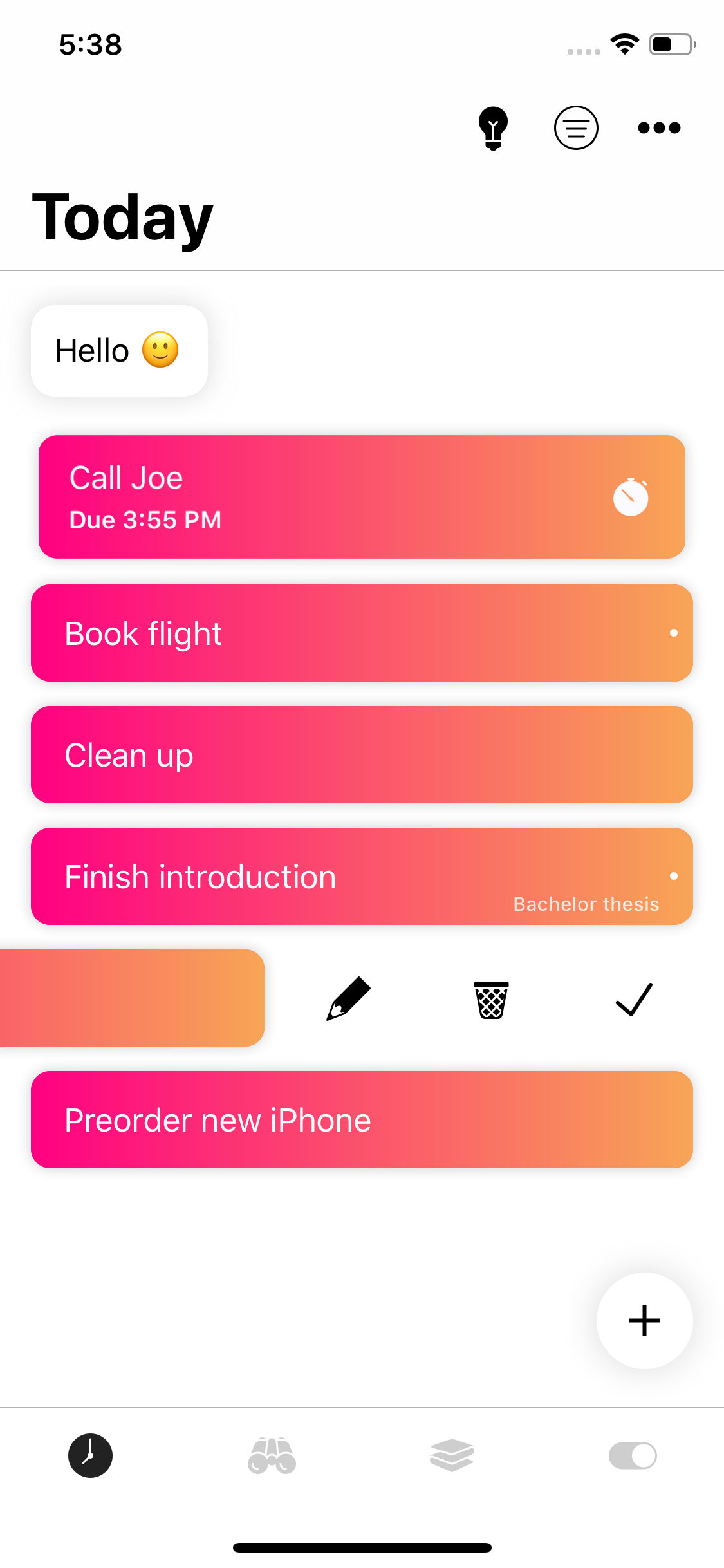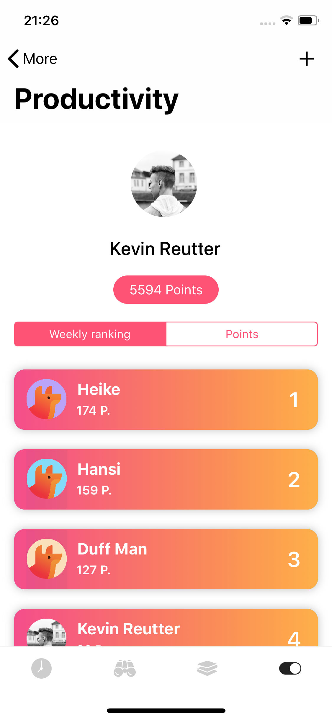 My name is Kevin, I'm 23 years old, indie iOS developer / HCI student from Germany and the maker of Planny 2! Over the last months I worked on a new version of Planny. Planny 2 is all new and has been rethought from the ground up. Planny isn't just a todo app. Planny is your friend helping you to be more productive. Planny learned everything important from common to do list apps but combines them with intelligence and gamification. Everything starts by planning your day in the morning. Planny provides intelligent suggestions of tasks you can do today. But it doesn't stop there. During the day Planny intelligently reminds you if you tend to forget your tasks. To motivate you even more, you earn productivity points for adding and completing tasks, and also lose them if you shift tasks or forget them. These points can be compared with your friends, so you can see who's the most productive one over the week.