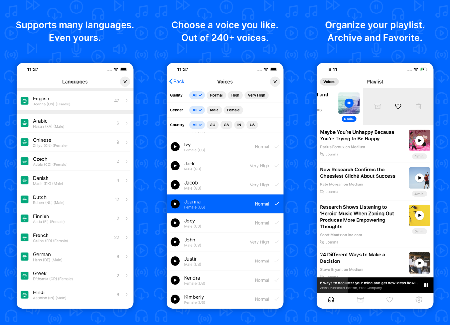 * What does Playpost do? Playpost transforms articles on the web into audio using artificial intelligence to create natural-sounding audio within seconds. So it sounds like a real person reading to you, without the need to wait for a real person to narrate the story to you. * Why do we need Playpost? Playpost allows you to make better use of your available time by listening to stories instead of reading. Listen while commuting, walking to the grocery store or when working out. You don’t need to sit down and read anymore. Just put on your headphones and press play. * Who is Playpost for? The app focuses on people who read a lot of stories on the web but can't find the time to read it all. Now they can just listen to it, even at times when they can't read but cán listen. * What makes Playpost stand out from the crowd? The app uses DeepMind’s WaveNet technology, making the voices sound as realistic and natural-sounding as possible. This is currently the best available technology to transform text into speech. Now in the hands of everyone. The app is also intelligent enough to extract only the article contents out of a website. So you can enjoy listening to the article, instead of other text on a website, like; navigation buttons and related content.