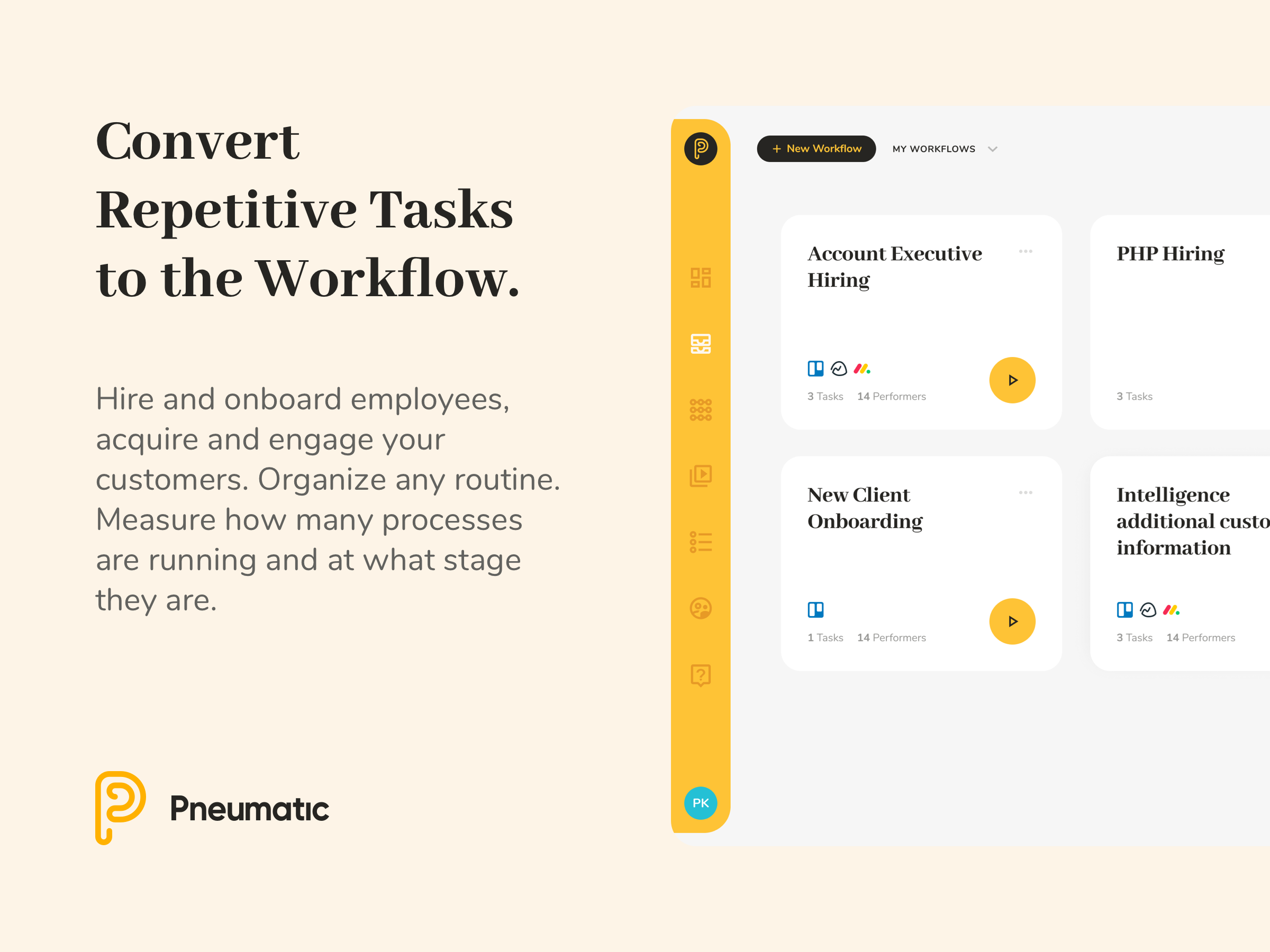 Free workflow management. It empowers small teams to build efficient workflows on a fast, intuitive platform. Shape how work is done. Ease the routine by converting repetitive tasks to workflows. Bring structure and full visibility to your business.
