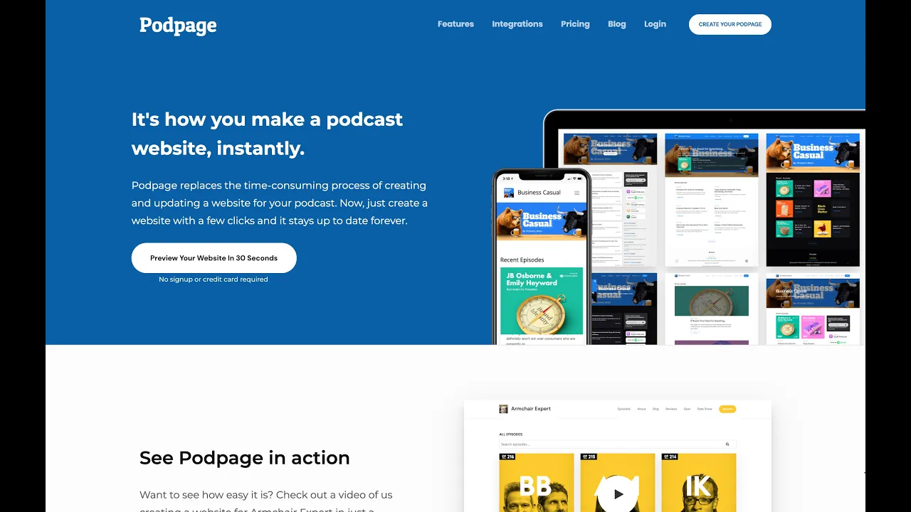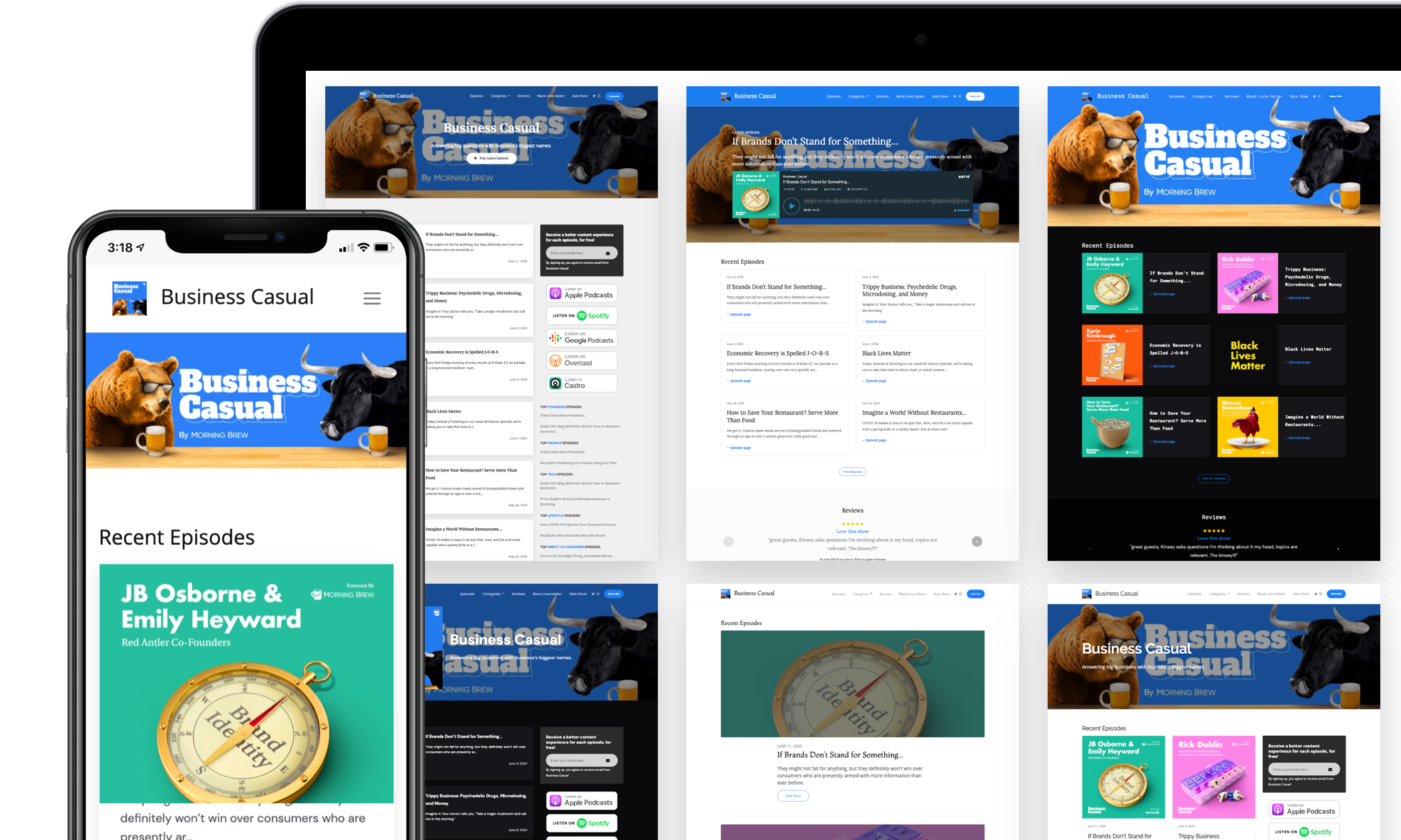 Podpage makes it easy to create a podcast website with just a few clicks. Every page is optimized to be found on Google and it stays up-to-date forever. No technical knowledge necessary. Thousands of podcasters host their sites with Podpage, including Morning Brew (https://www.businesscasual.fm/), Kevin Rose (http://podcast.kevinrose.com/), and many more. We are recommended by the School of Podcasting: https://schoolofpodcasting.com/podpage-quick-and-easy-podcast-websites/