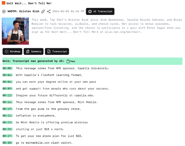 A podcast platform with AI transcript, mindmap and summary for unlocking the knowledge in every podcast.