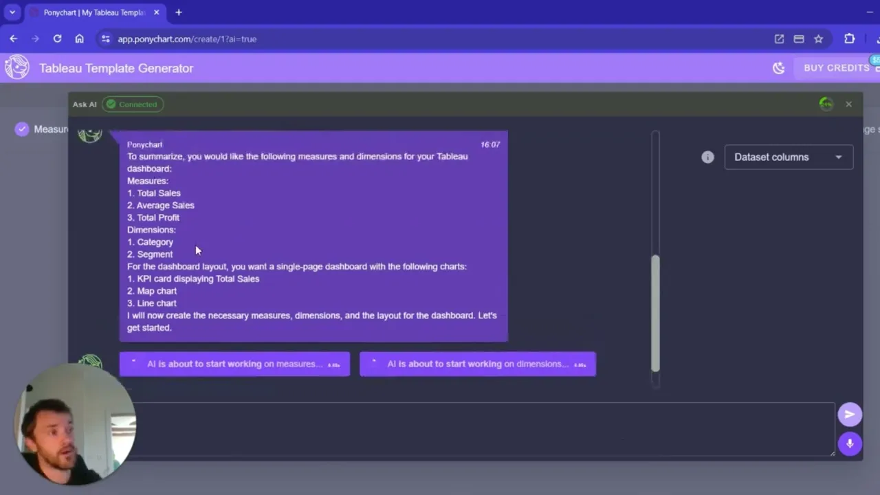 Ponychart is an online application that helps Tableau professional get started faster on building Tableau dashboard for Business Intelligence using AI tools like ChatGPT, Gemini, Claude and other LLMs. It can save time to get you started to build a Tableau dashboard.
