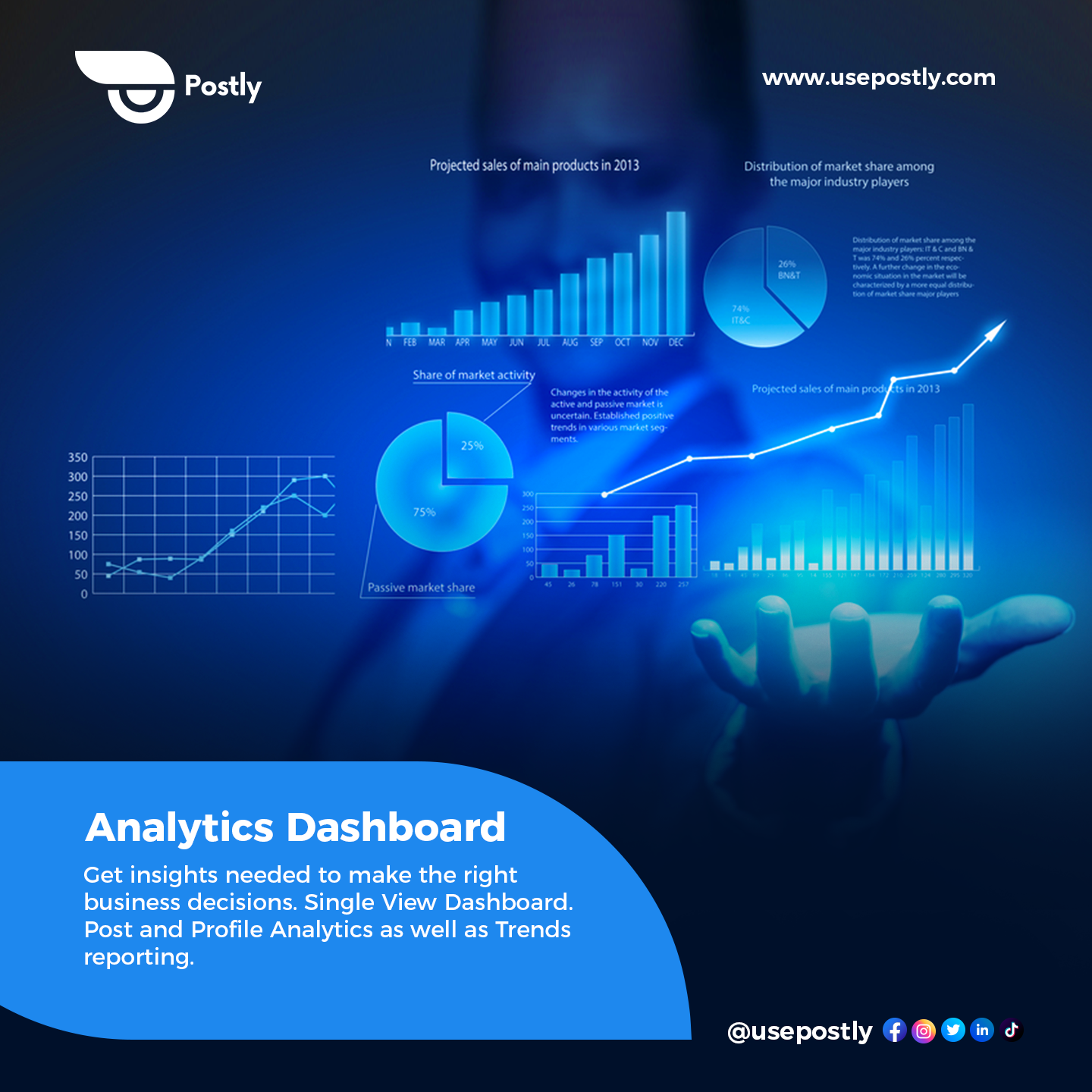 Postly is on a Mission to Making Social Media Marketing Easy Again! Powered by AI. Social Media Manager. Plan, Review, Approve and Schedule Social Media Contents, in Private, Secure Workspaces. 10X Faster! Powered by AI Learn Social Media Marketing Learn digital marketing and visually plan your contents. Get access to tools and templates that make your social media marketing management less stressful. Write Once, Publish Everywhere Postly AI generates Marketing Copies 10X Faster! Write once, publish everywhere. Write once, publish on all popular social platforms. Auto-manages Twitter Threads. Auto-manages the Content Formats for different social platforms. Team Collaboration Dedicated, Secure Workspaces for your Team & Clients. As a freelancer or a Marketing Agency, never get your job mixed up! Also your team members and clients can review and approve posts before they are published. Content Scheduler View and Reschedule your Best Performing Posts. Calendar View of Draft, Scheduled and Published Posts with image thumbnails. Audience Engagement Grow your audience organically by engaging them. Postly Inbox: Manage all incoming messages from your customers and much more. Trends Analytics AI-generated insights to guide your business decisions. Get a 360-degree view of your results on all social networks from a single place, to set performance benchmarks and monitor improvements over time.