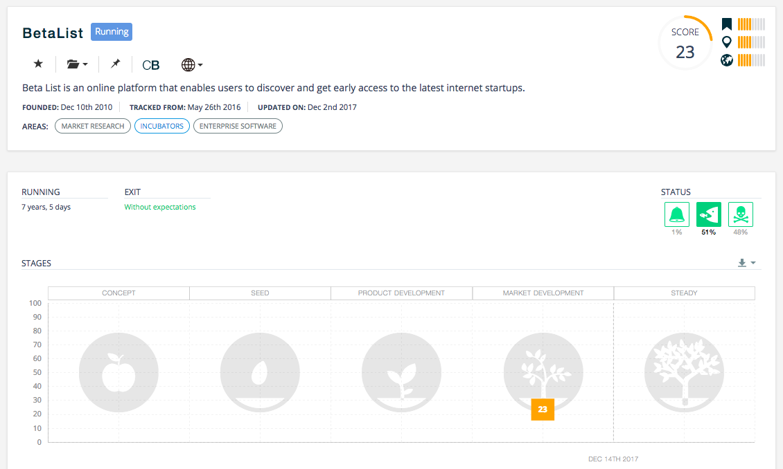 PreSeries is a machine-learning-as-a-service platform that standardizes the evaluation of 410k+ startups — and counting! We can provide in one-click what would cost you on your own hundreds of thousands of dollars and a team of data scientists to implement. Every startup we come across is scored, ranked, and you can filter results by industry area, location, growth stage, etc. You can also create virtual portfolios and share them with your team. You can join for free (full access) at preseries.com, in exchange we would love to hear your thoughts on how we can improve our platform. Get in touch: durand (at) preseries (dot) com