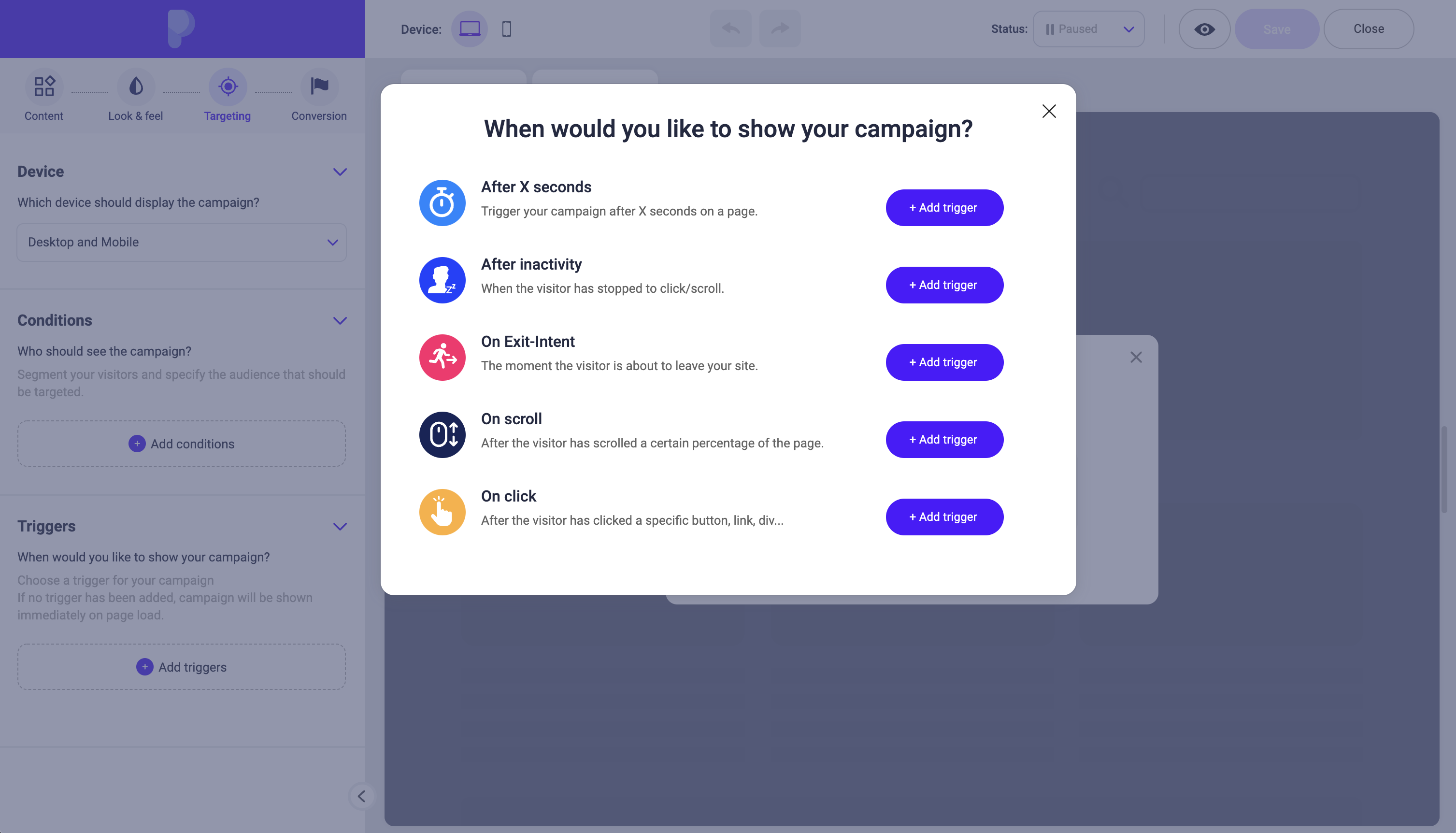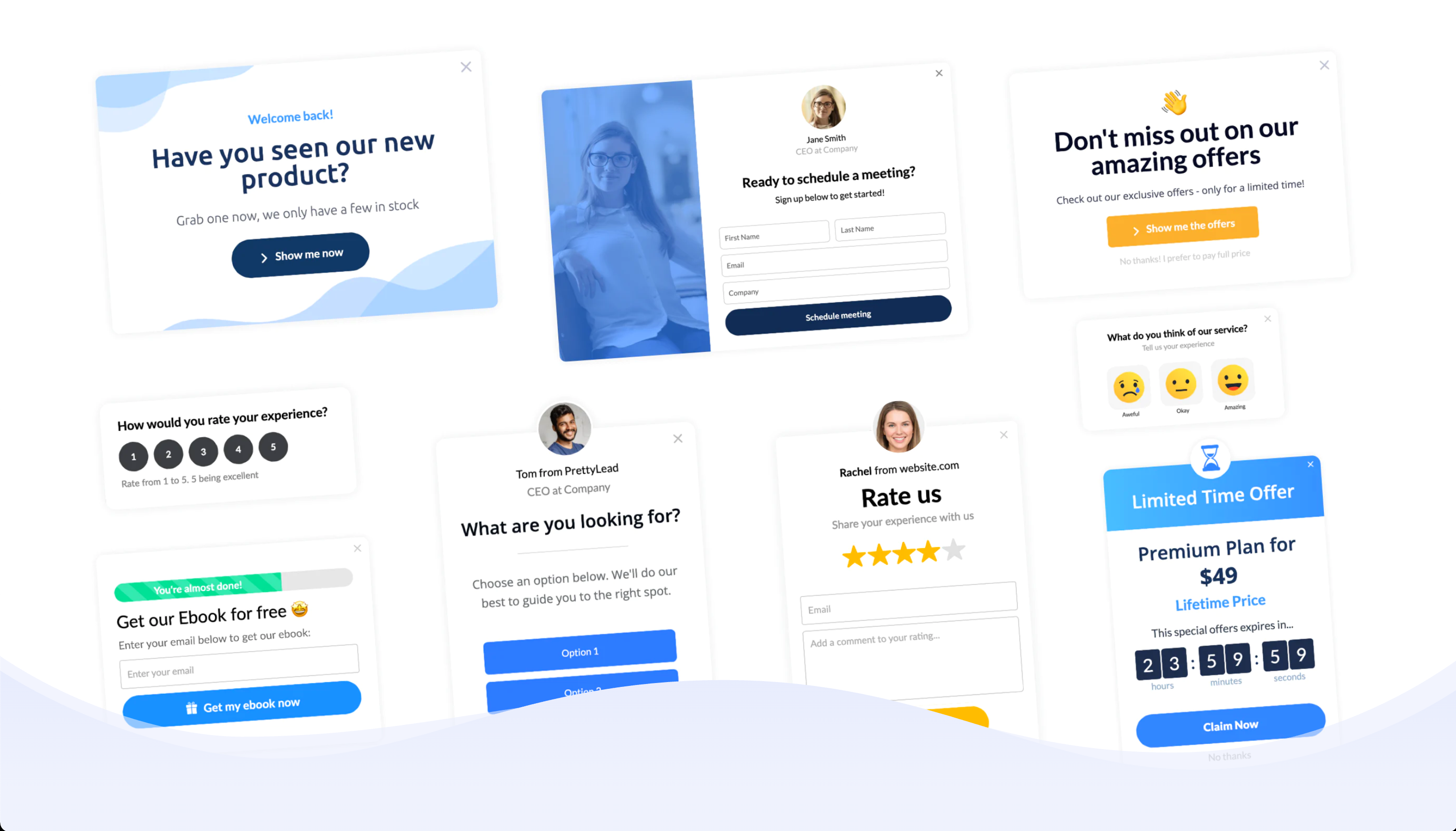 PrettyLead helps you to create engaging popups, notification bars, fullscreens and embedded forms to boost your conversions and sales on your website. Choose from our pre-made templates to create targeted, high-converting elements (No designer or developer needed). A powerful yet easy to use drag and drop visual builder to help you design your campaigns with simplicity.