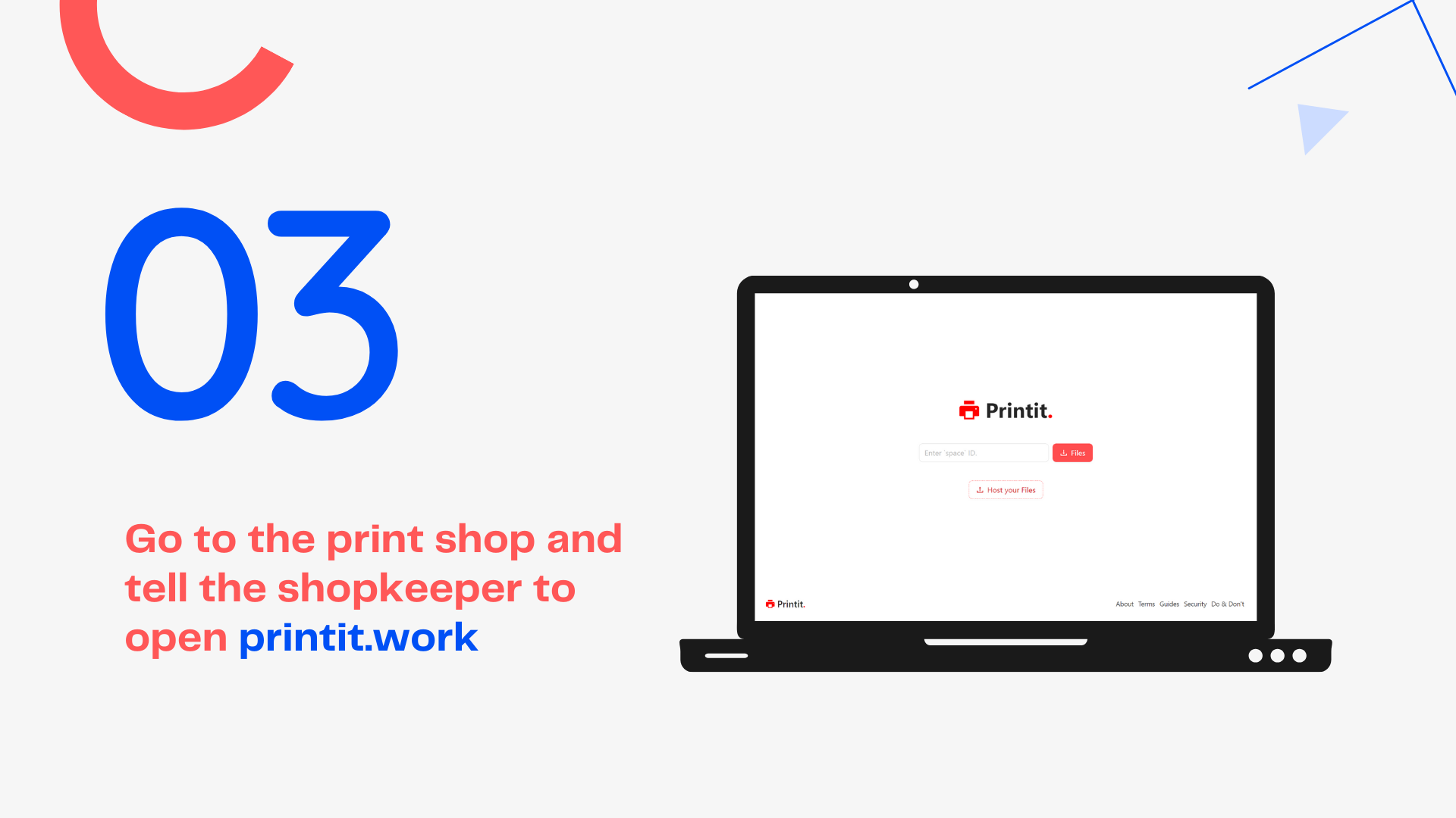 Printit helps people print their documents more effectively and efficiently. Using Printit is always trustable as your device doesn't have to connect with another unknown PC. This project is almost a Non Profit project, and the only motive is to helps people to print their documents more effectively and efficiently. If that convinces you, let's create your space and share your documents for printing.