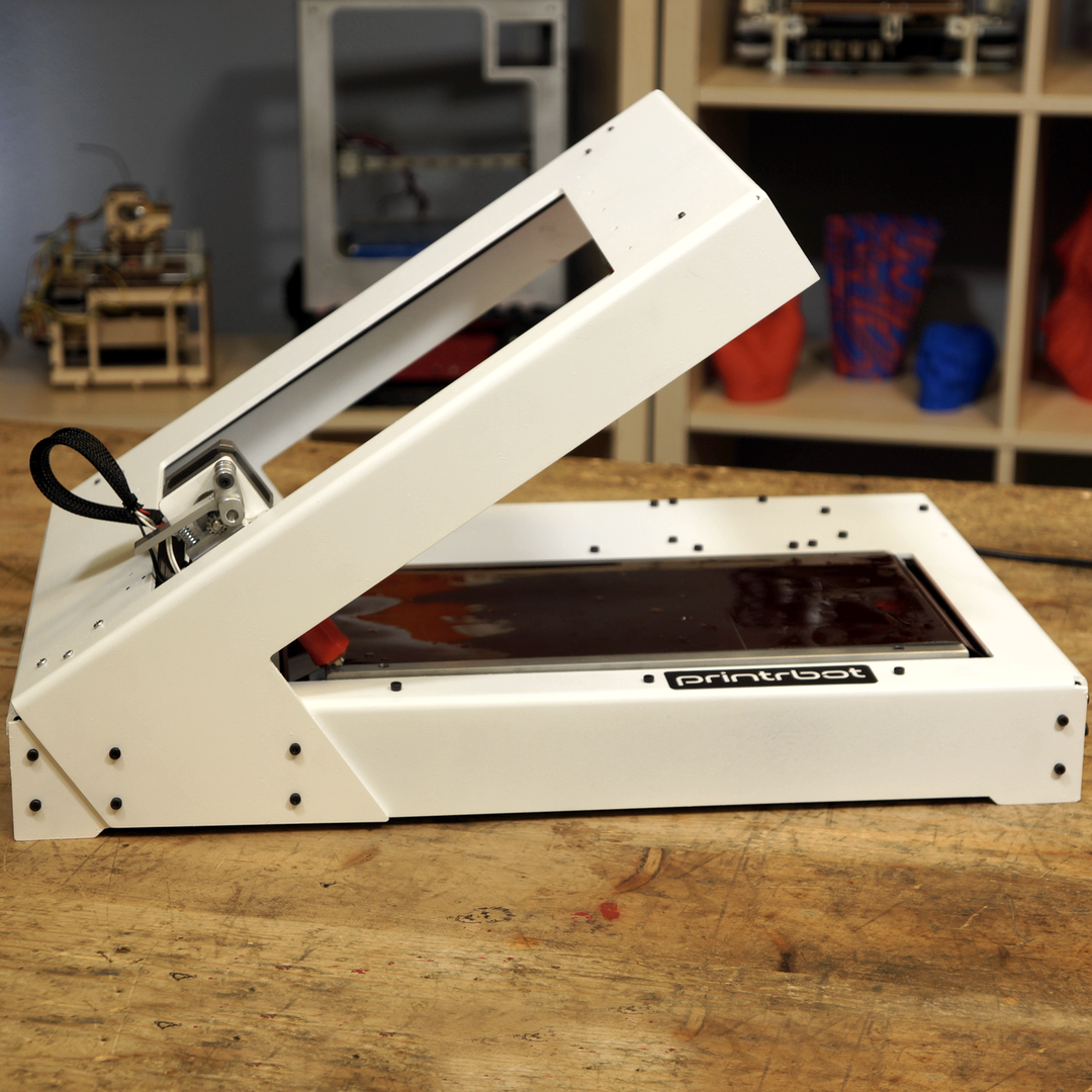 It is basically a 3D printer that prints onto a moving platform. As the objects is completed it moves down the belt slightly along the Z axis and then pops the object off of the belt when it is done. The printer prints at a surprising angle and instead of creating a top-down object it creates angled cross sections of the object as it spools down the belt. The printer outputs at a .2mm layer height and prints standard PLA onto a heated bed for easy removal. It runs Polar3D’s layout and slicing engine. In short, if you want an infinite-Z 3D printer at a non-infinite-Z price, this might be your best bet.