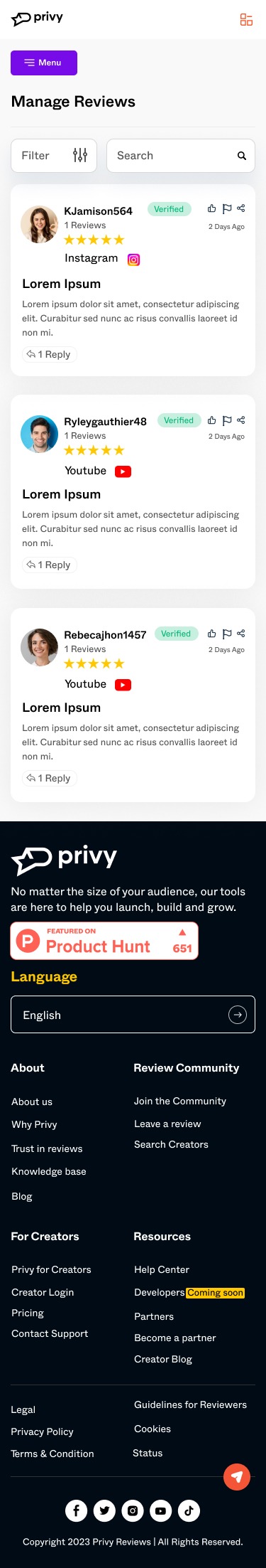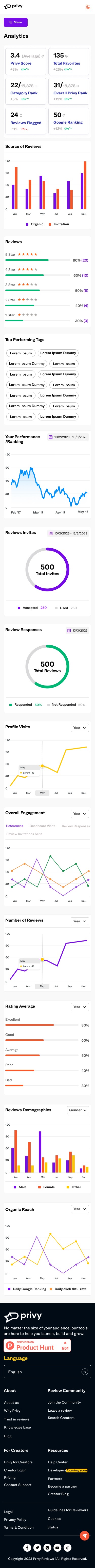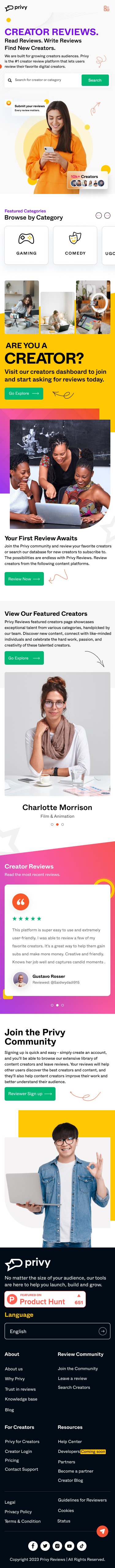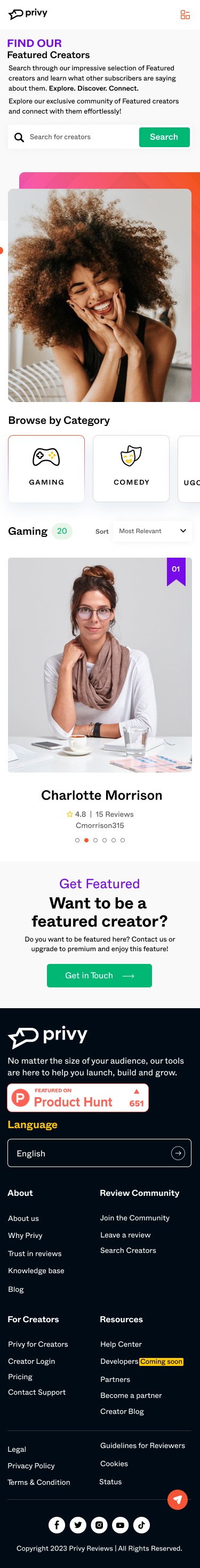 Privy Reviews is an extensive platform catering to content creators and their audiences. It allows creators to gather audience reviews, enhancing content quality and facilitating monetization through social proof. Privy also strives to be the largest directory for discovering creators, categorized by niche, location, ratings, and more, making it the premier destination for finding new creators to follow and support.