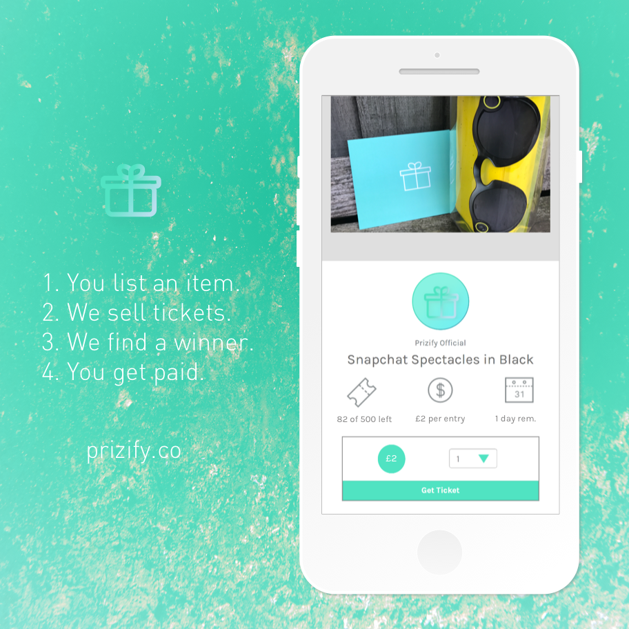 Prizify aims to be the easiest place where anyone can find, enter or turn anything into a prize. Once a user lists an item, we take care of all the rest: the ticketing, the payments and selecting a winner. At the end of the process, the lister ships of the item and gets paid. Pretty simple, really.