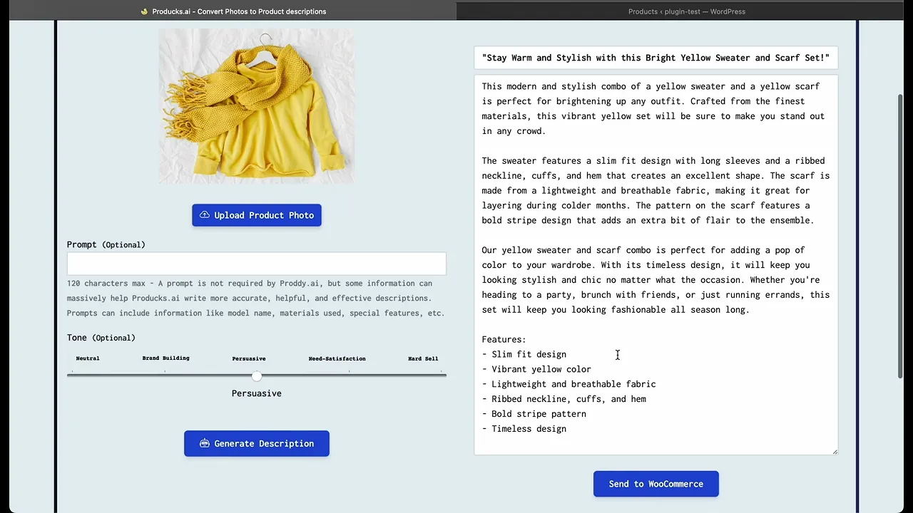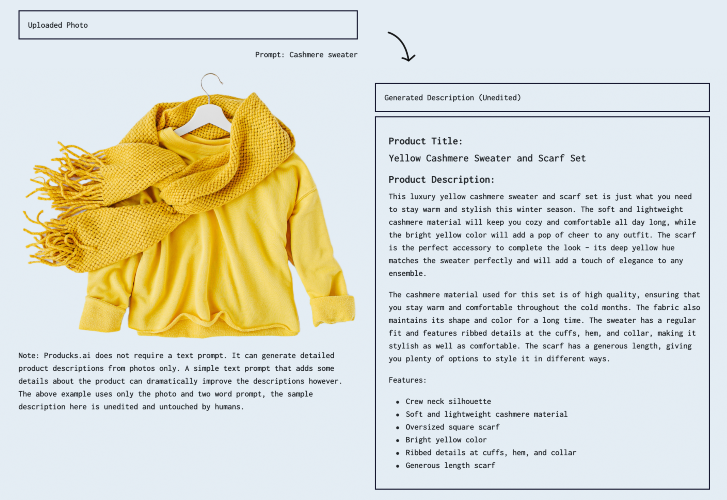 Producks AI helps store owners to quickly generate SEO optimized product descriptions using state-of-the-art AI models. It takes 5 seconds to generate a fully customized and unique product descriptions that conform to best practices from marketing and sales. All you have to do is upload a product photo and voila! Producks AI also differentiates from the competitors by being fully integrated into your online store’s software, making fully automating your sales cycles so much easier.