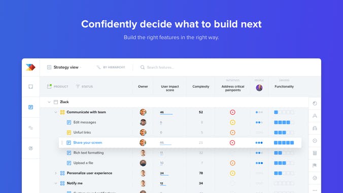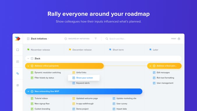 With the Slack integration, you can push valuable product feedback straight into productboard, where it can be analyzed alongside inputs from many other sources. -INTEGRATE Connect Slack and productboard to work together seamlessly. -PUSH Push Slack messages or threaded replies to productboard. -DISTILL Highlight the most important insights and link them to feature ideas.