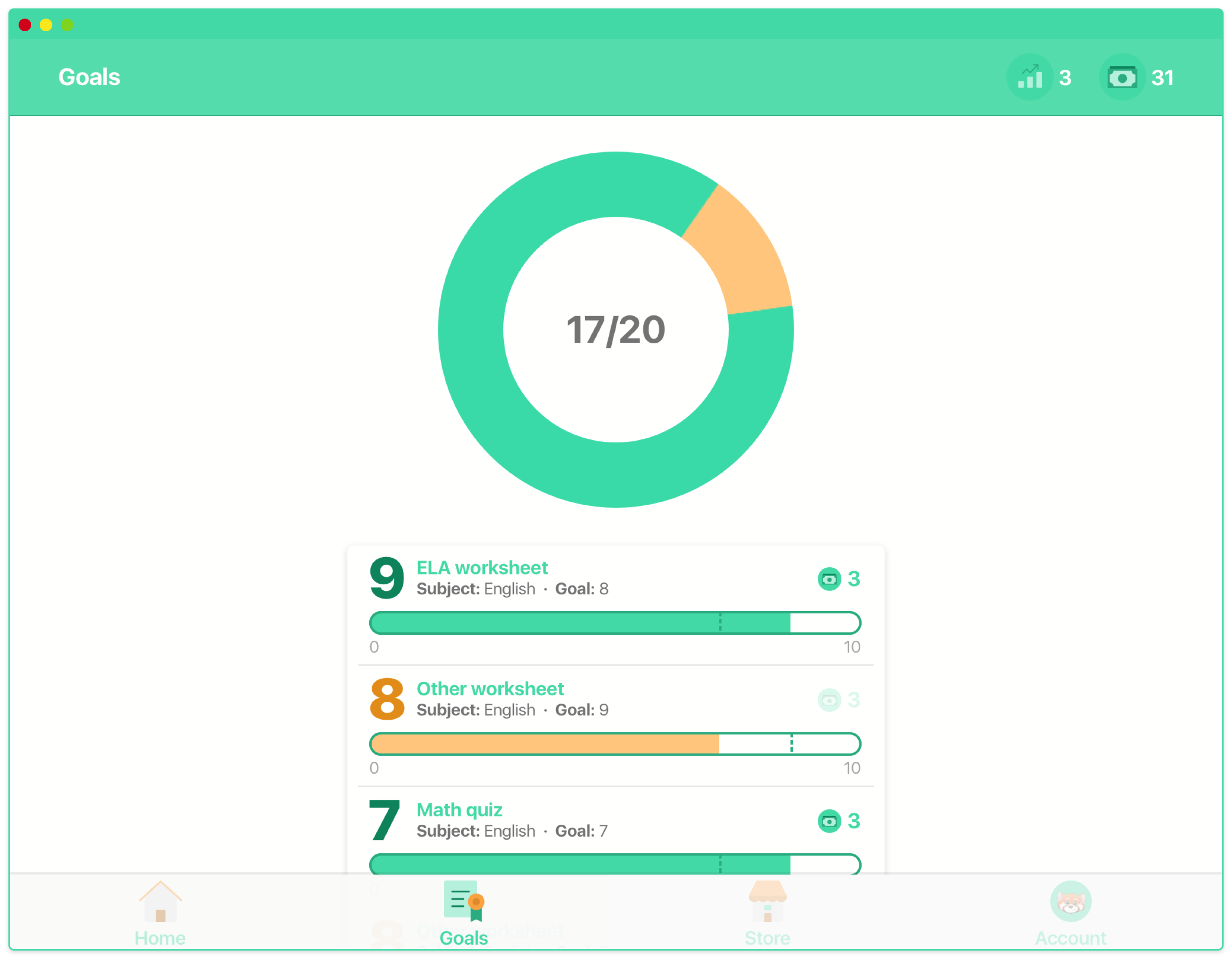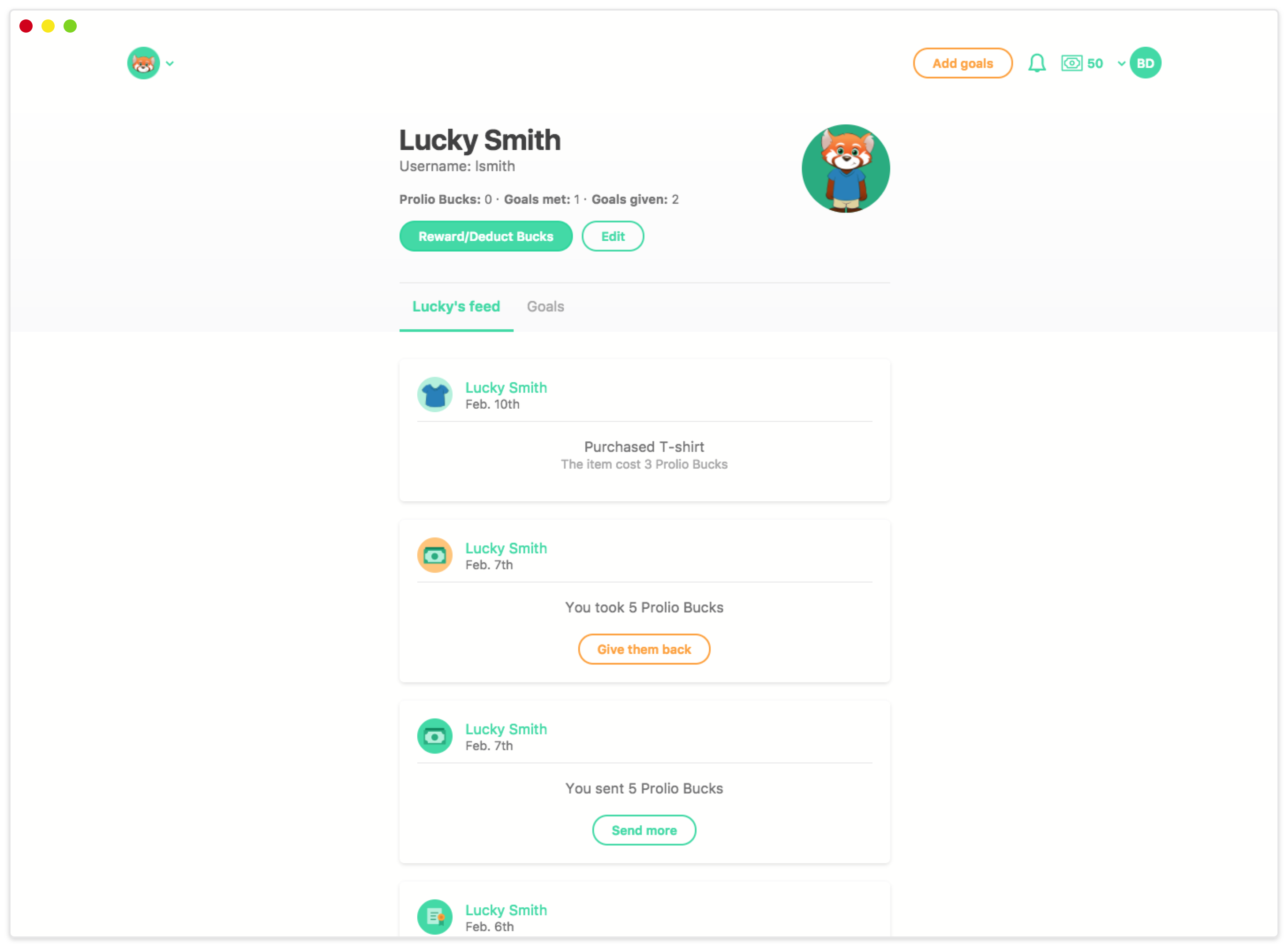 Prolio helps teachers set and track individual goals for their students. Teachers and students can both log in to Prolio and see the goals and progress. When students meet their goals, they earn Prolio Bucks (a virtual currency) which they can use to customize their Prolio accounts, or make purchases in class.