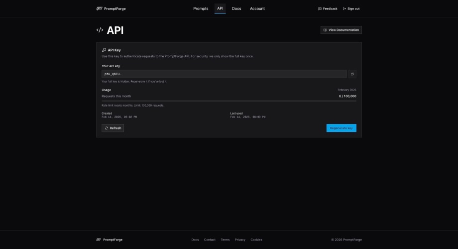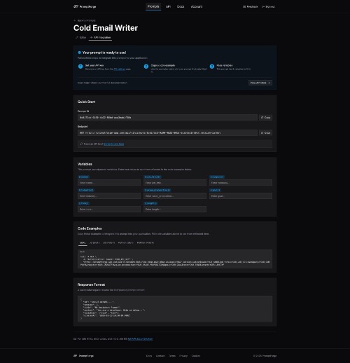 The prompt management API for teams shipping AI products. If you're building with LLMs, you've felt the pain: prompts are hardcoded in your codebase, every tweak requires a deploy, and there's no way to track what changed or roll back. PromptForge fixes all of that. How it works, 3 steps: 1. Create prompt templates: Write prompts with {{variable}} syntax. One template serves unlimited use cases. 2. Version control automatically: Every edit creates an immutable version. Pin API calls to a specific version for production stability, or always fetch the latest. 3. Serve via REST API: Fetch any prompt with a single HTTP request. Pass variables as query params, get back interpolated content in under 50ms. No SDK required. Key features: - Dynamic variable interpolation ({{role}}, {{task}}, {{tone}}) - Automatic version history with version pinning - RESTful API with Bearer token auth - Works with any LLM: OpenAI, Anthropic Claude, Google Gemini, Meta Llama, Mistral, Grok, and more - Rate limit headers in every response - API key management built in Why it matters: Teams that decouple prompt logic from application code ship prompt improvements up to 3x faster (Gradient Flow, 2025). Research from Google DeepMind shows that even minor prompt wording changes can shift output quality by 10-25%. You shouldn't need a full deploy cycle to test that.