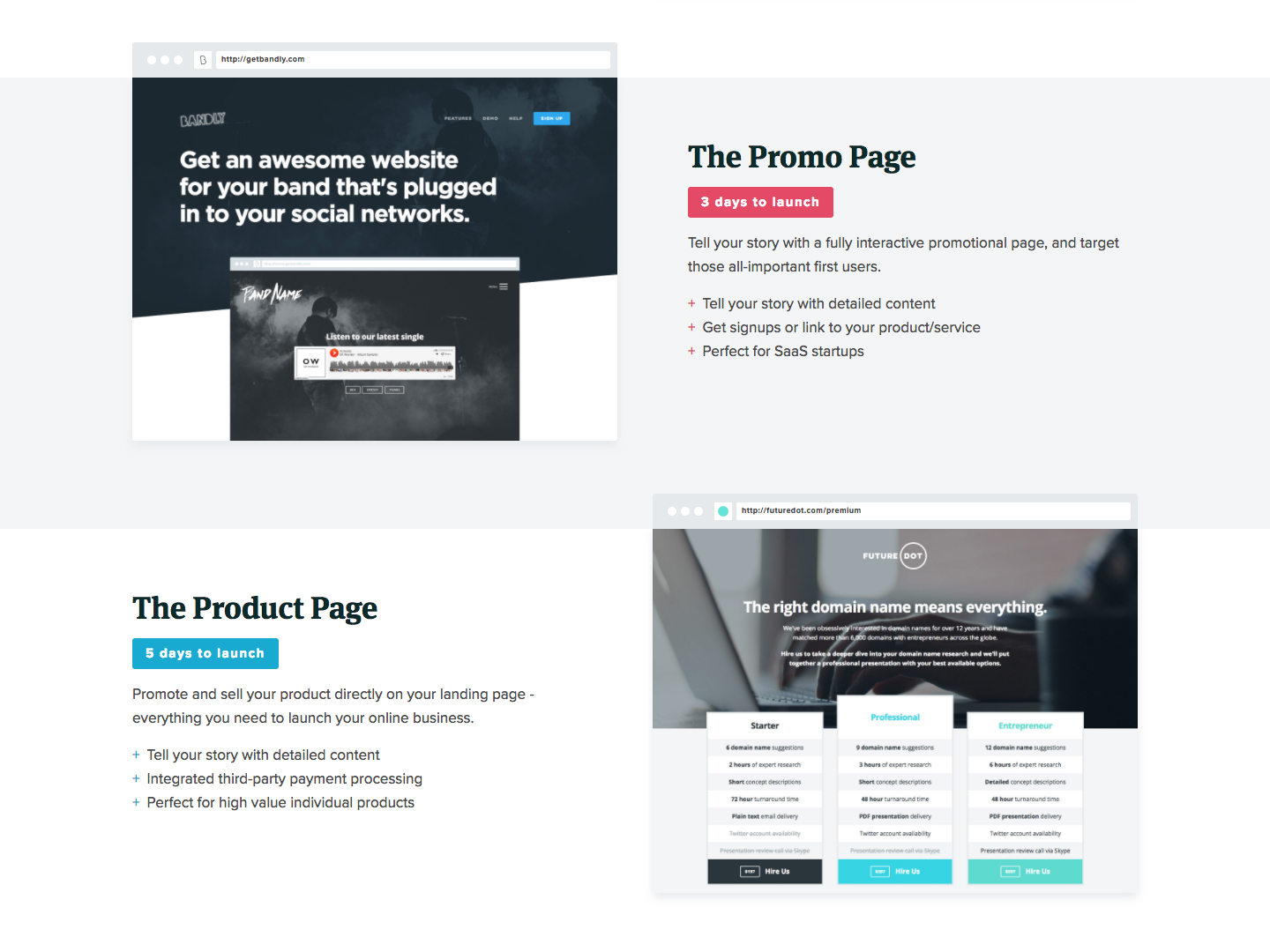 Propeller is a done-for-you landing page service that gives you the best of both worlds. Dramatically better results than a template. Much faster and more affordable than consulting with an agency. Starting a business this new year and need help getting it off the ground? We'll create a bespoke landing page for your startup – designed, copywritten and launched for you by pros, for a fixed cost, within days.