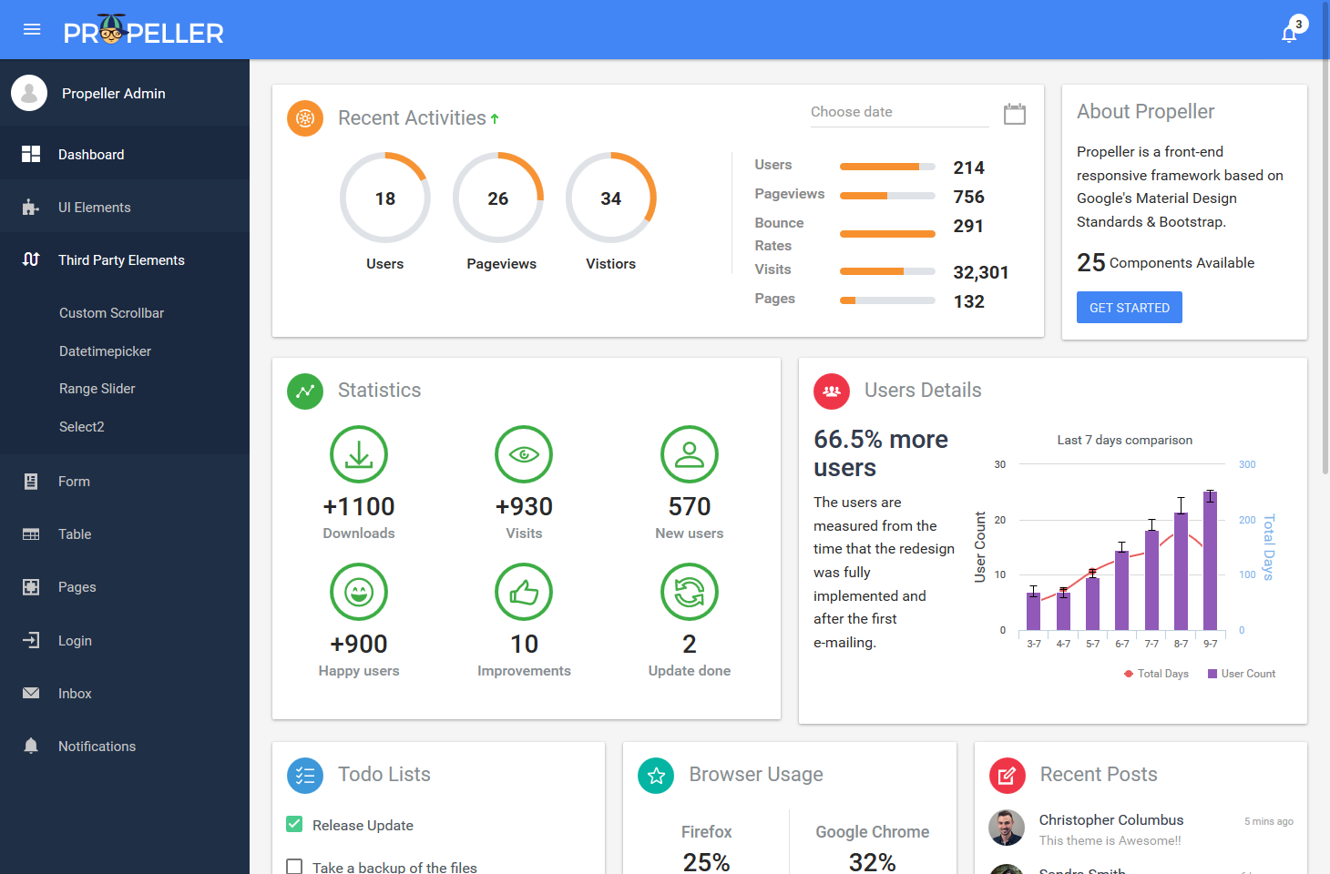Propeller is a front-end responsive framework based on Google's Material Design Standards & Bootstrap. Develop more, Code less.