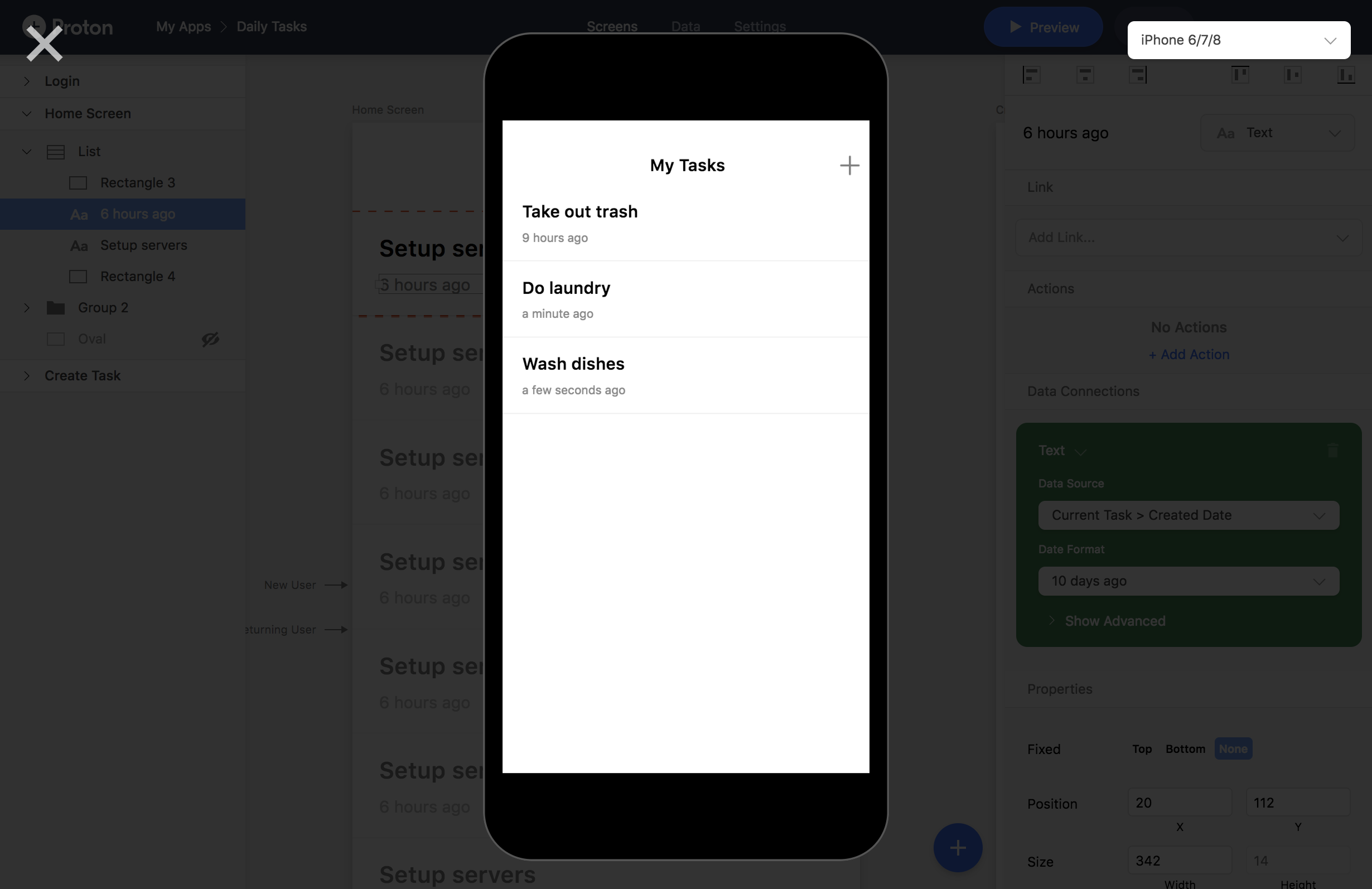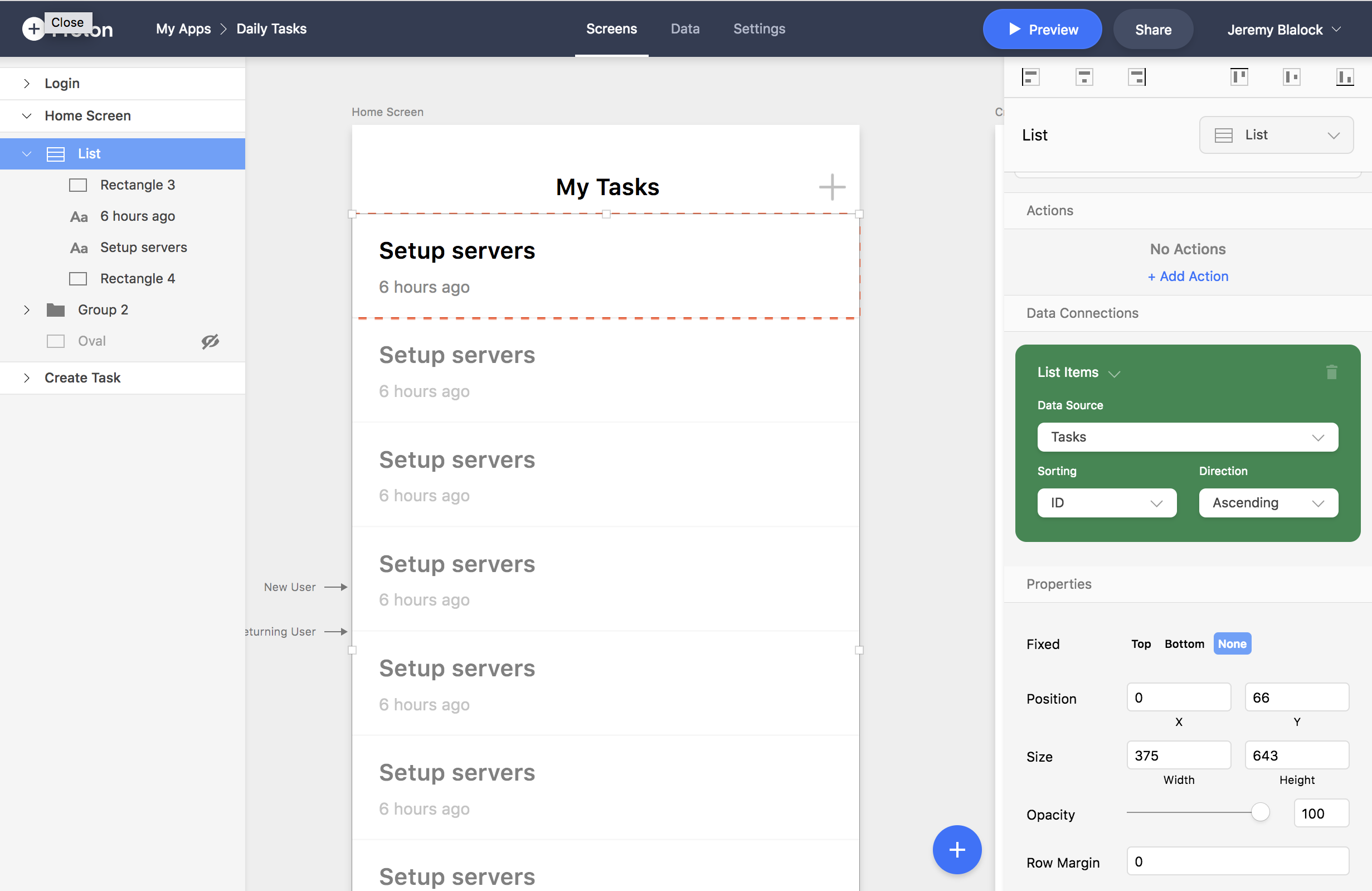 Proton enables designers and builders to create mobile prototypes that actually work—and can be tested with real users. Import designs from Sketch or Adobe XD, and connect data from an API or our built-in database to any element within the design to add functionality. Then test and share you app on your device. If you'd like, you can easily publish your app in the App Store & Google Play.