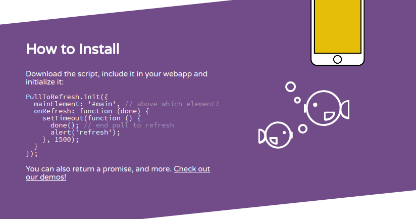 A small, but powerful Javascript library crafted to power your webapp's pull to refresh feature. No markup needed, highly customizable and dependency-free!