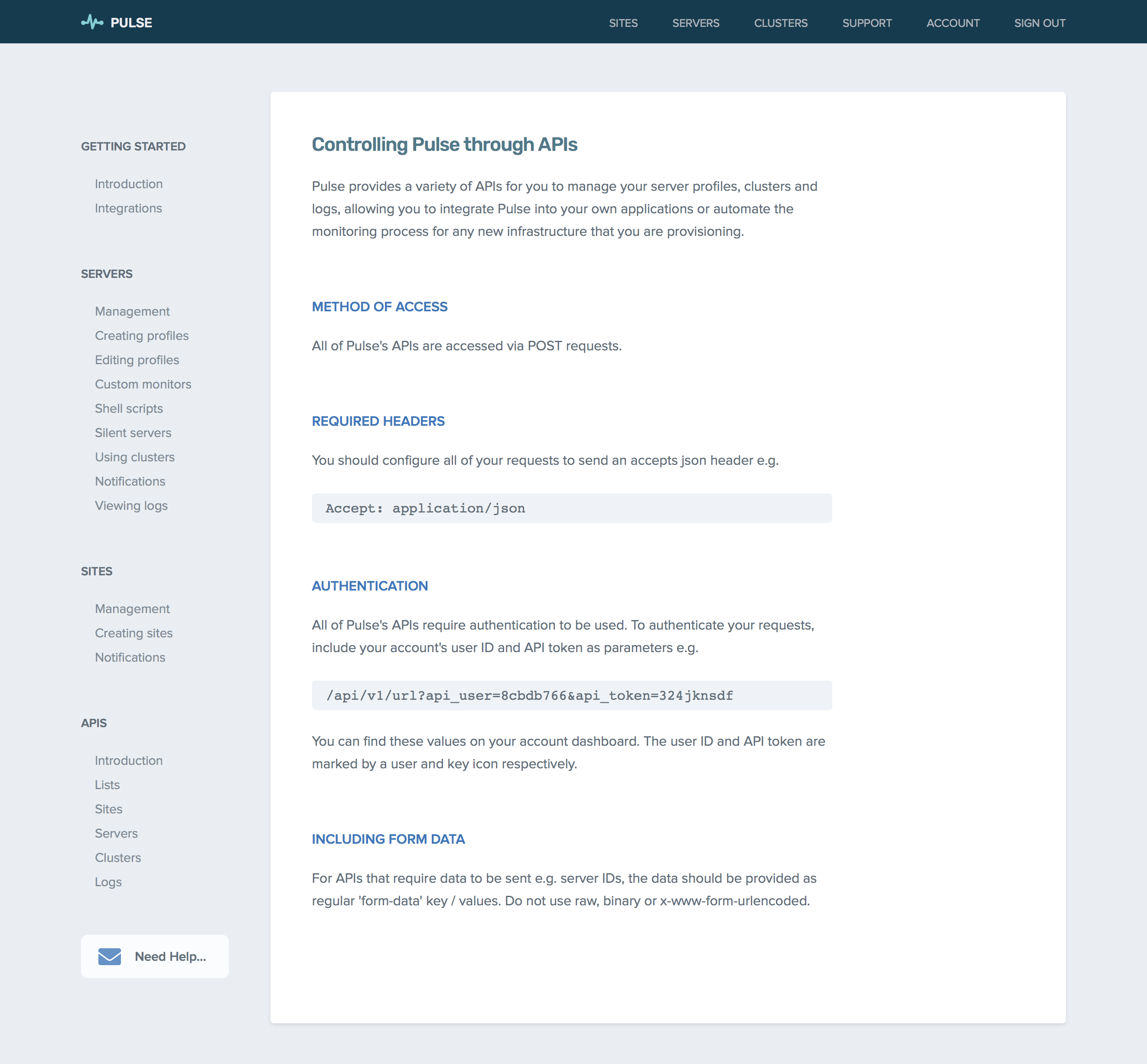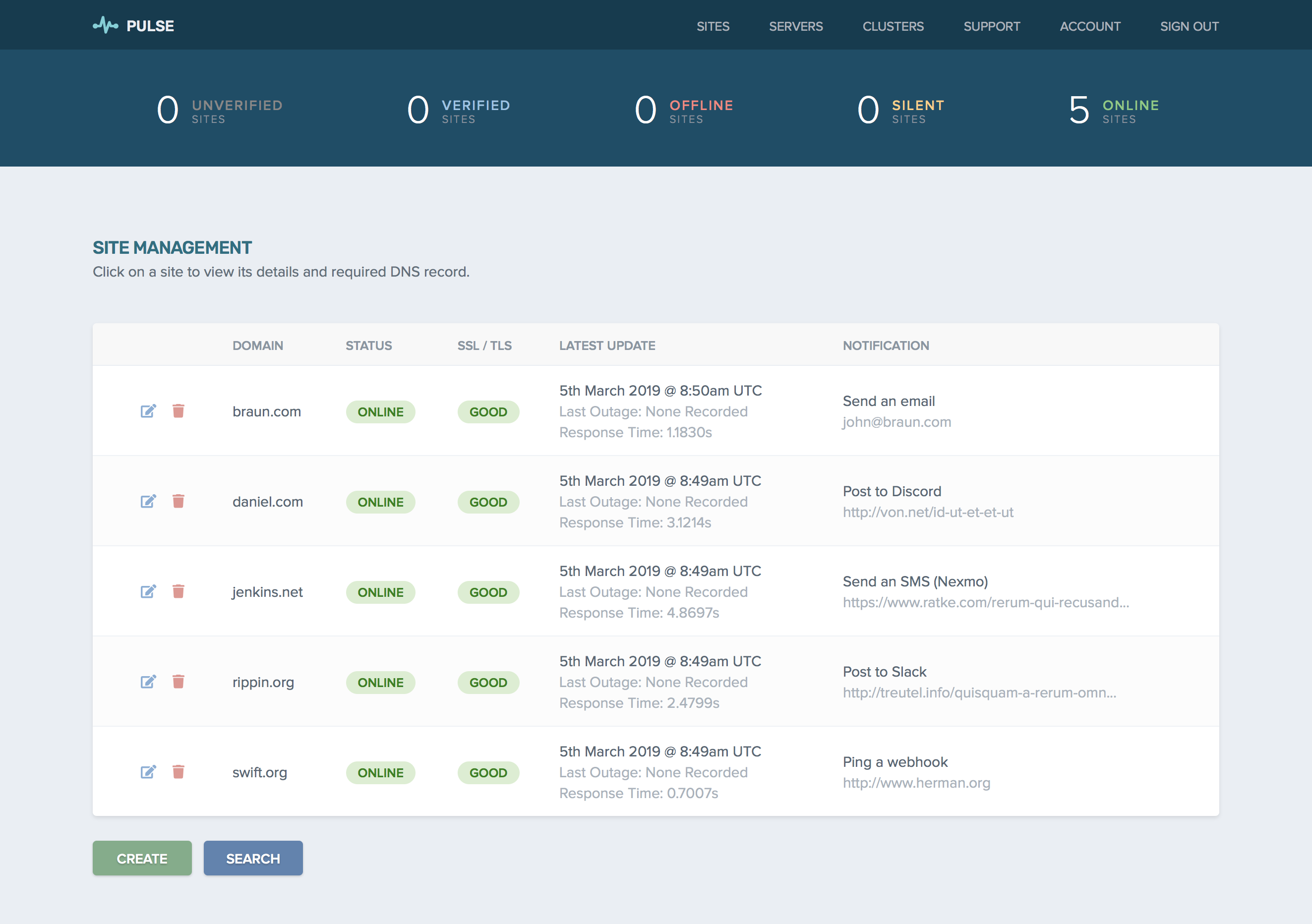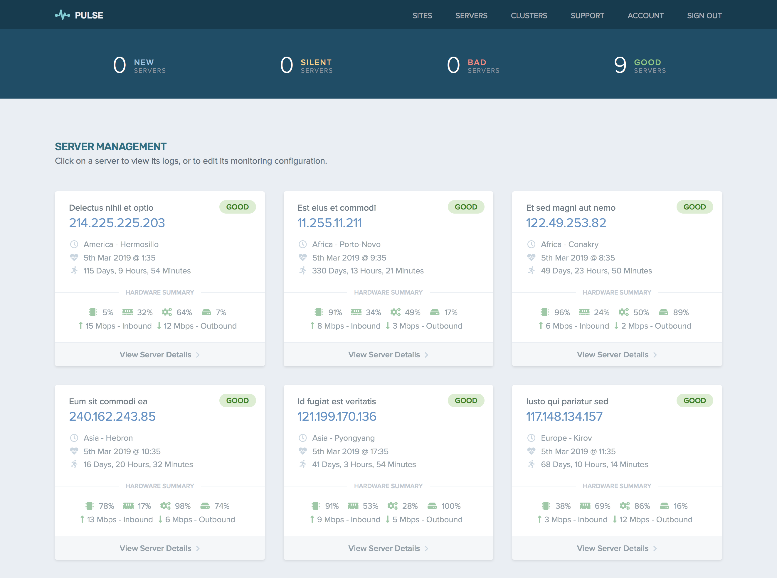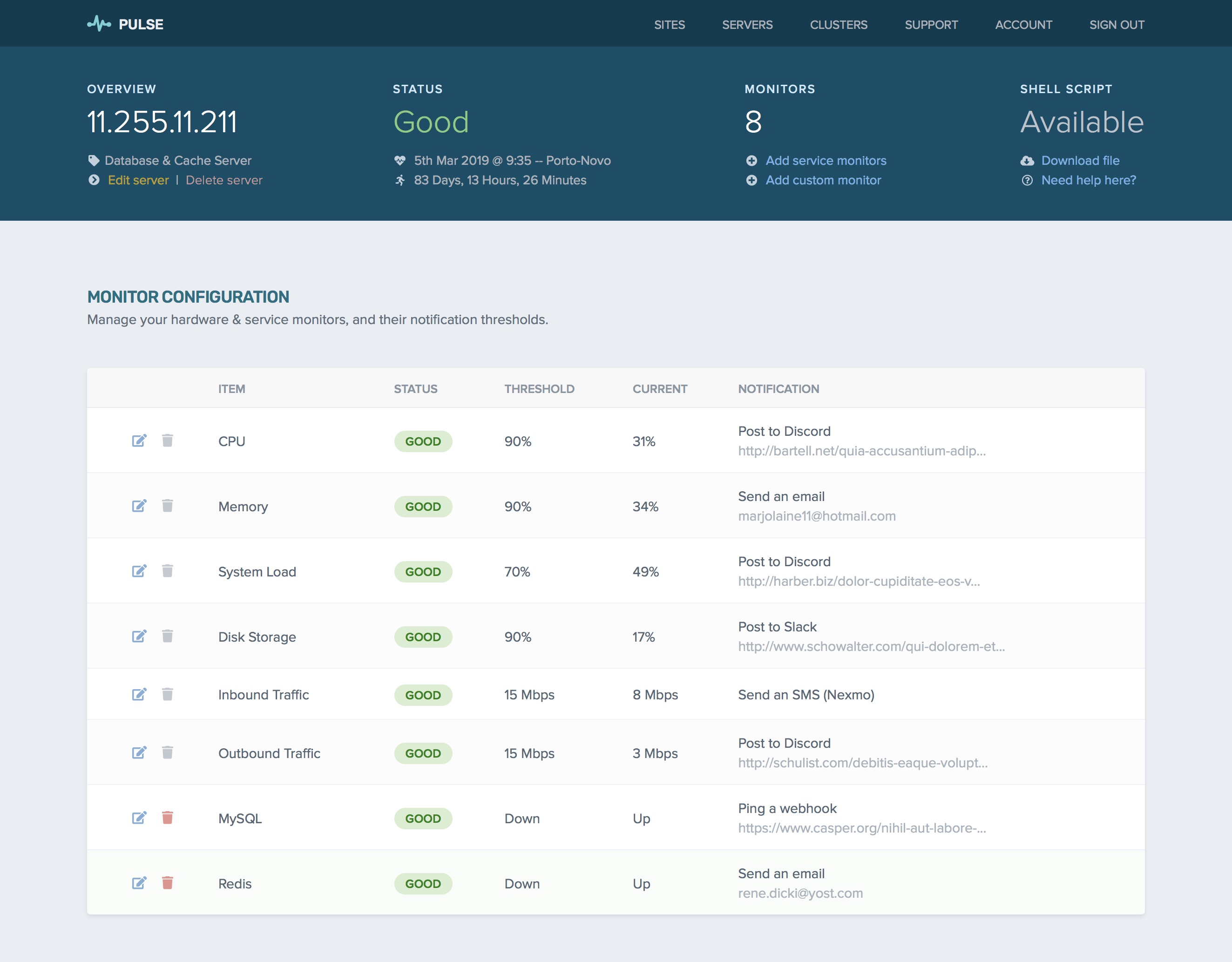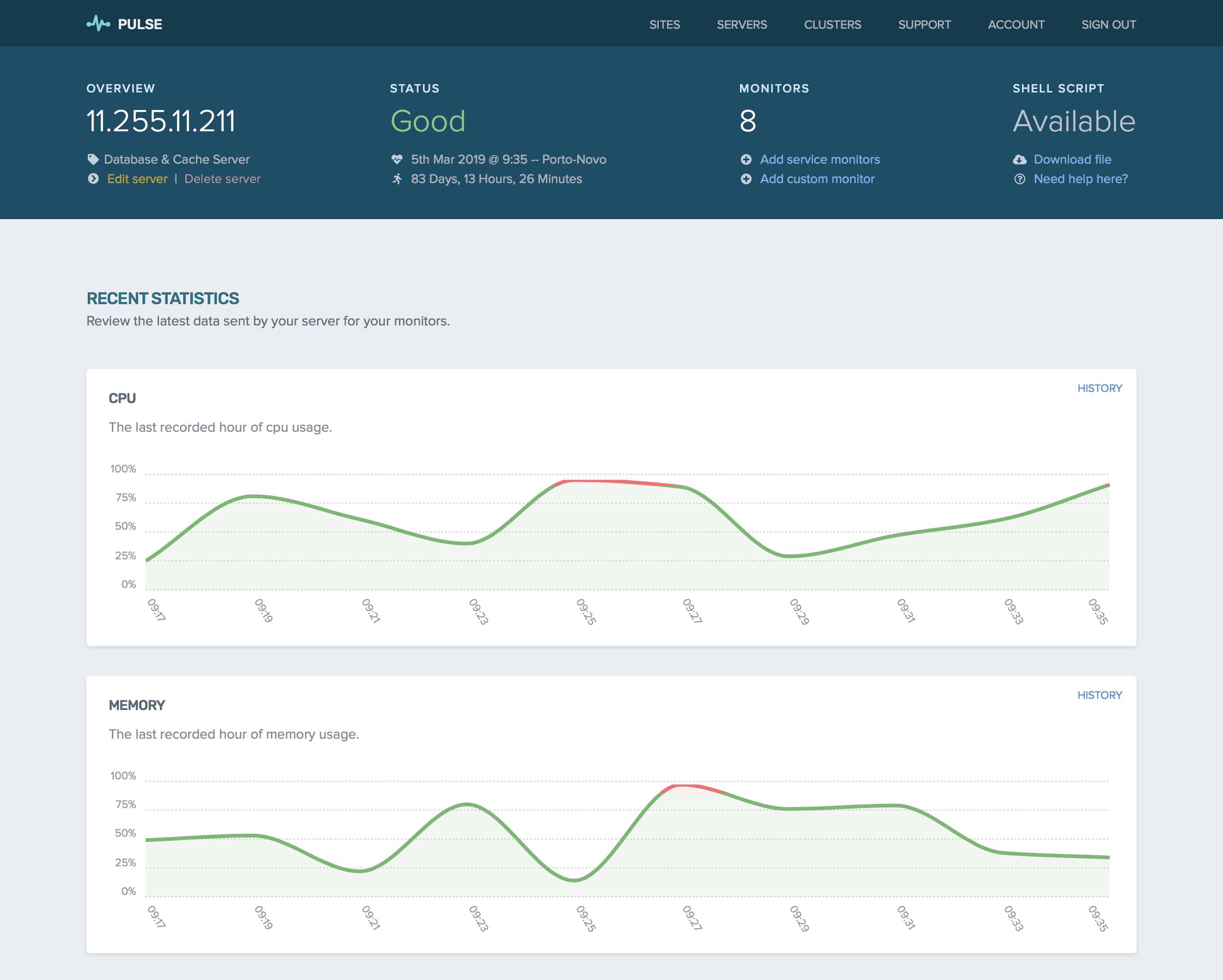 Pulse is a friendly, developer-focused monitoring solution for your sites and Linux servers. It provides painless log analysis, a full API suite, and supports alerts via e-mail, SMS, Slack, Discord, and webhooks. Unlike other platforms, it’s focused on the developer, not the DevOps administrator - you don’t need to be a Linux expert in order to use it. The UI is simple and straightforward, while also being modern and pleasant to use. It’s also flexible, accommodating your specific monitoring needs, while not bundling a whole lot of bloat that you don’t need. And perhaps most importantly, its pricing is in line with what independent developers and small teams can justify to their clients. In addition, since Pulse is developer-centric, it also includes a full suite of APIs to assist you in managing your infrastructure. You can create server and site profiles, assign monitors and download the corresponding shell scripts (that’s right - Pulse is entirely agentless, no “sudo” is needed!). Logs are also available, allowing you to construct your own monitoring dashboard if you need to.
