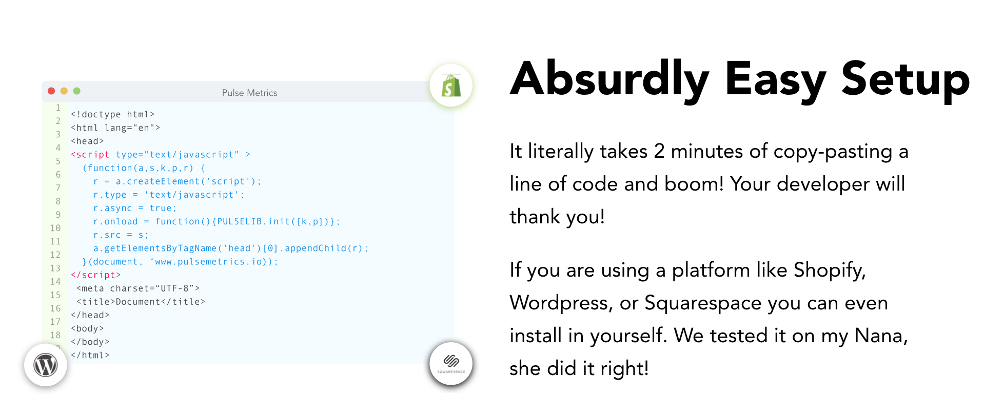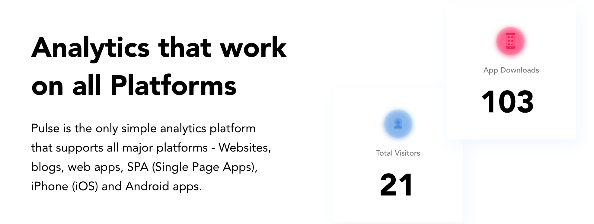 Pulse Metrics are GDPR-Compliant out of the box, can be setup with one-line of code, and proactively help to keep you on top of your sites and apps. Pulse sends you email digests every morning so you know how your sites and apps did the day prior, and is the only analytics platform that manages your web, iOS, and Android products in the same dashboard.