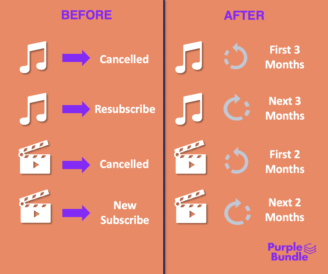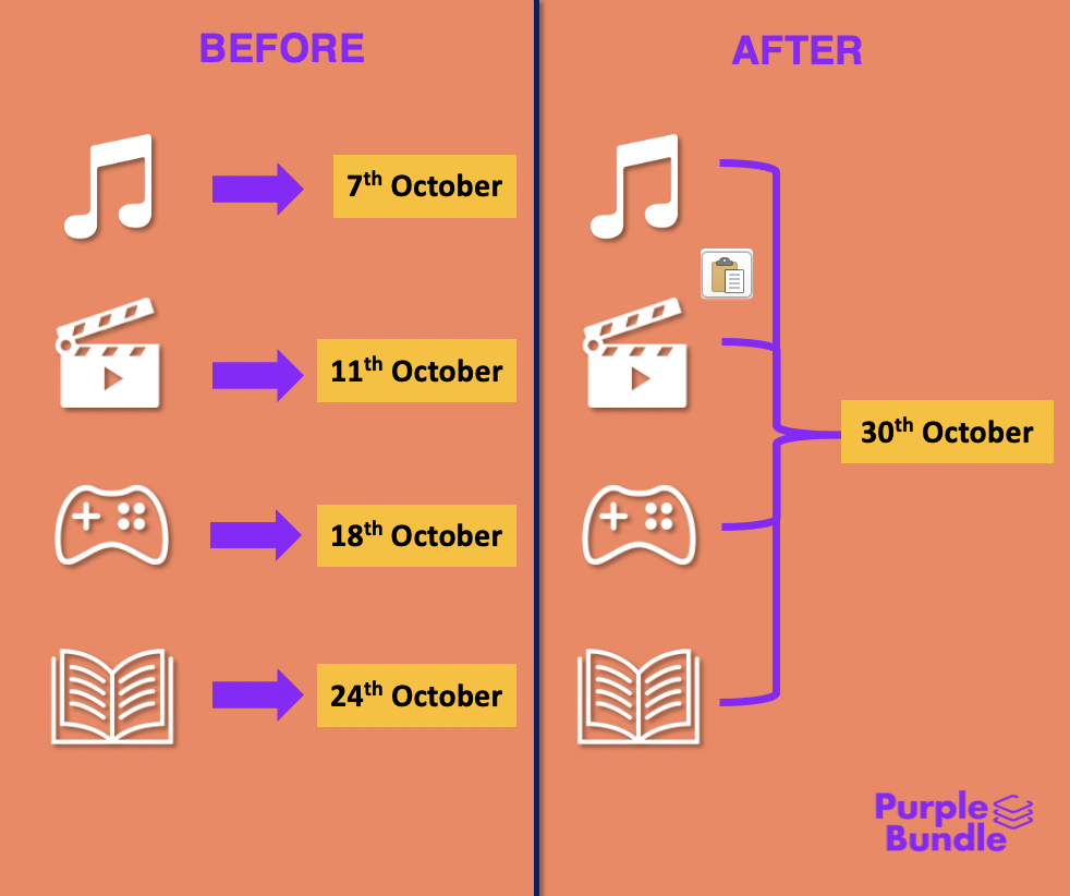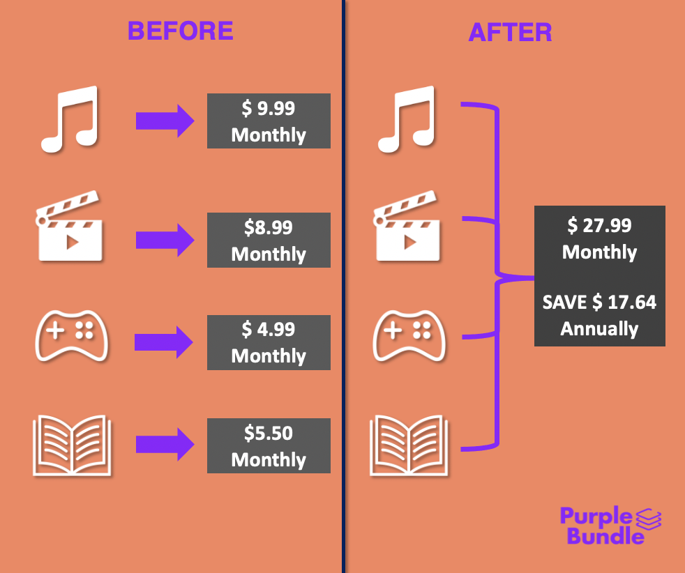 Imagine you can do this with your subscription plan: 1. Pay all in a single payment transaction. 2. Only remember one due date. 3. Unsubscribe whenever you like it. 4. Shop for new subscription plans. 5. Explore free trials products or Free forever. 6. Importantly, save you money. Thats what Purplubundle does.