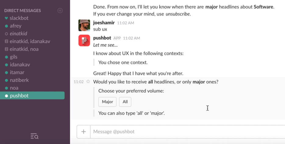 INTRODUCING PUSH FOR SLACK Subscribe to any topic and get major news updates on them as they happen. Keep up to date on professional and personal interests.
