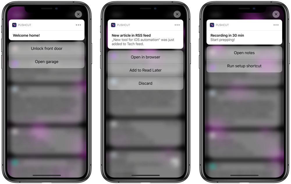 Connect iOS shortcuts with online automation and advanced triggers. Smart notifications kick off the right actions - triggered based on location, time, or virtually any event online. Use shortcuts, Zapier, Integromat, or custom URLs to unleash automation superpowers. Try it for free!