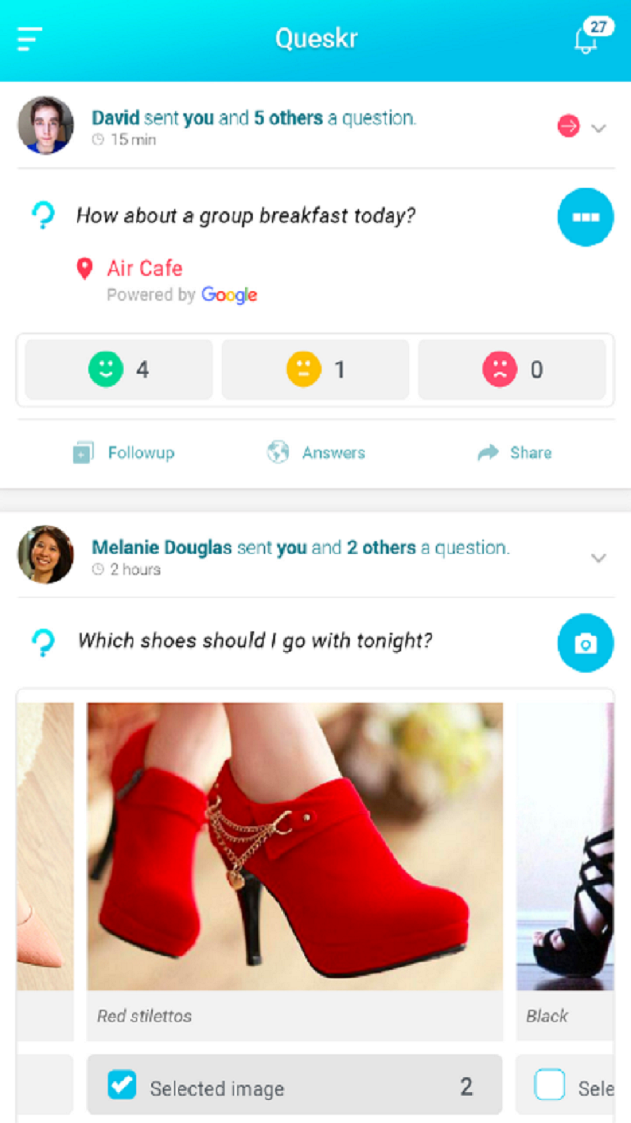 Queskr is an entirely new social network built around Q&A. Users create visually-rich questions which can be answered in one click by their family, friends and colleagues. Answers are consolidated into easily reviewed results, and users can then chat in the context of the question. Thus, Queskr is solving a need no other social or chat solution does - allowing people to quickly ask questions and get answers. Social Q&A also has great potential to disrupt the digital survey market as well as become another channel for mobile ads. Queskr was created by a passionate team with many years of experience in building top-of-the-line products.