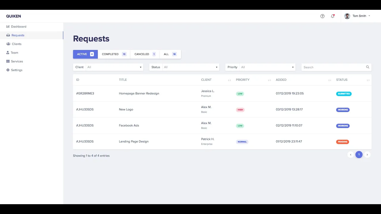 Quiken is a client and request management tool that lets small teams and agencies manage clients requests, messages, and payments in a single and easy to use platform.