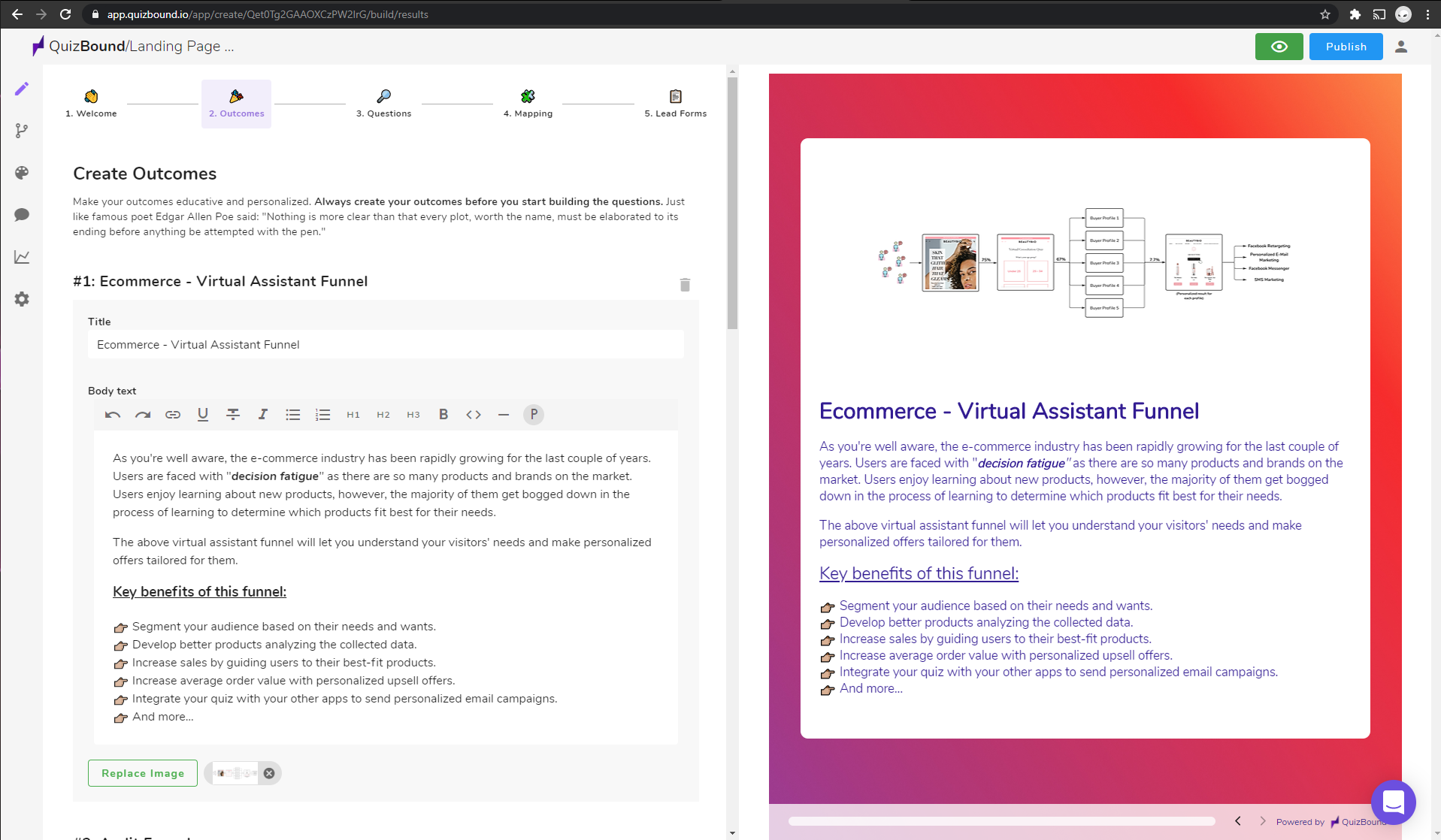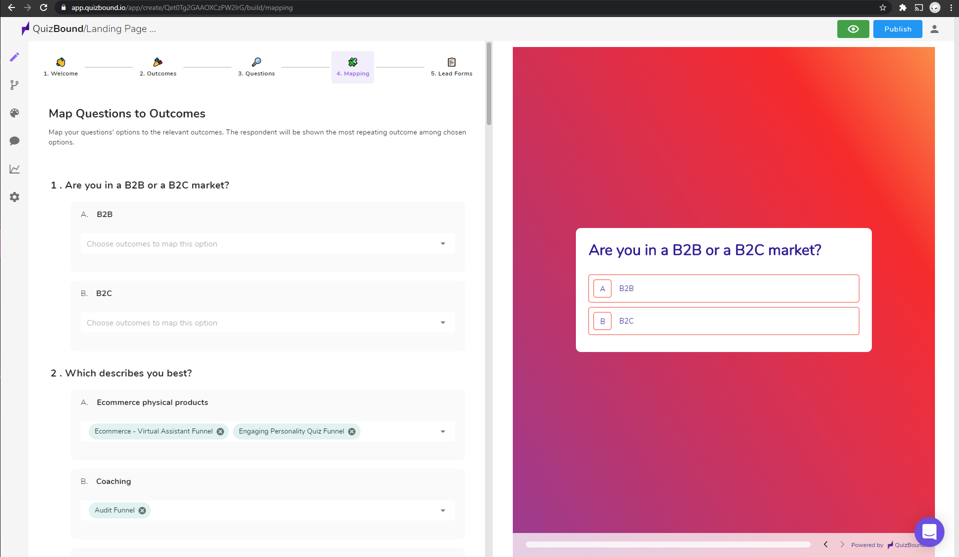 QuizBound is an online quiz maker with an advanced building tool and more than 2000 integrations. QuizBound helps you improve your customer satisfaction thus increases leads and sales while reducing marketing expenses. You can learn more about our product at https://www.quizbound.io/ Also, you can check out one of the many case studies at https://quizbound.io/blog/increase-ecommerce-conversion-rates