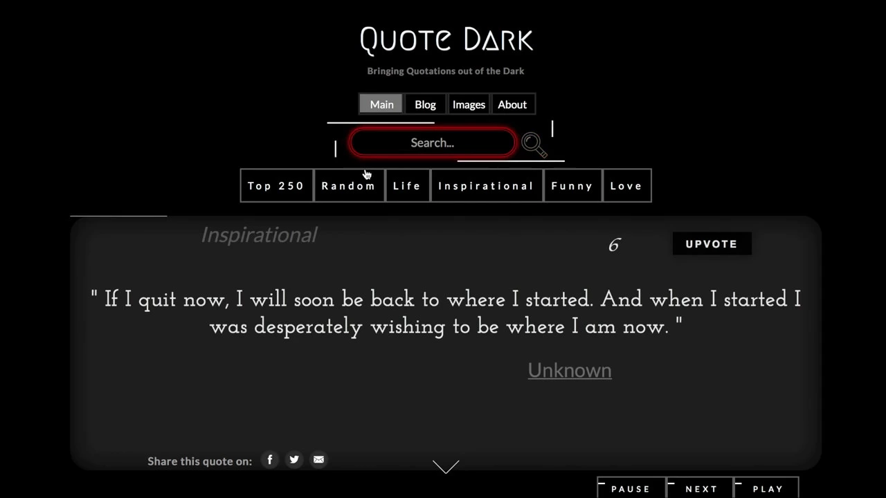 We all love quotes. However, there are few who realize that a small subset of quotations are repeated again and again. While we greatly admire those quotes, we knew we had to do something to bring out of obscurity the hundreds of thousands of quotes that are buried deep in age old quote websites and search engines. Hence www.quotedark.com In our database, we’ve collected over 200,000 quotes and counting. We have also created an advanced search algorithm specific for quotes, where you can misspell author names and enter vague words about a specific quote that stuck in your head to find what you’re looking for . We are aware some of our numerous quotations may be inaccurate or misattributed. That’s why we’ve developed an “upvote” system where users can highlight favorites. The most upvoted quotes appear in our “Top 250” section. We designed QuoteDark as an ad free and non monetized website. Our goal is to inspire and motivate people with amazing quotes they never knew existed. If you