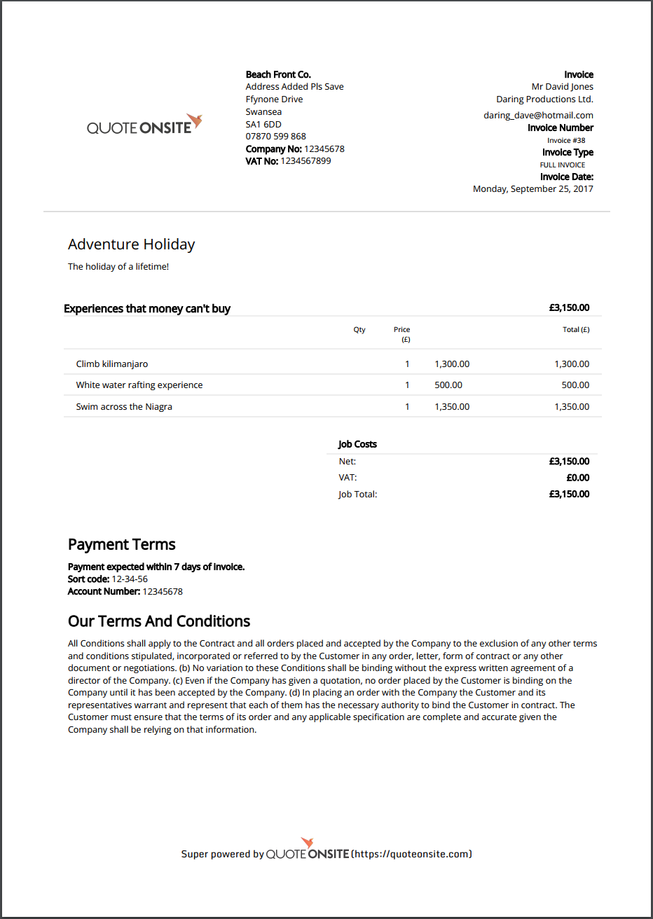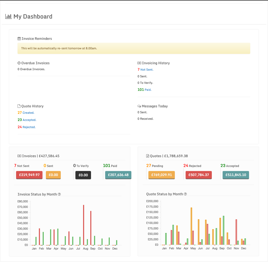 Create beautiful, professional looking quotes and invoices in minutes. Receive notifications when your Quote/Invoice has been read, add optional items in your quote and allow your customer choose quantities, enable automatic reminders for overdue invoices with your own customised email message and many more features and benefits. Easy-to-use, no-nonsense software for SME's.
