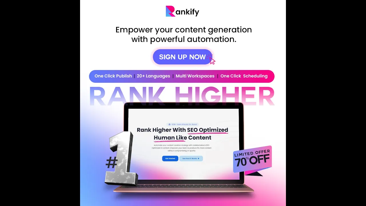 🔥🔥🔥 GET MASSIVE LAUNCH DISCOUNT OF 70% OFF 🔥🔥🔥 Get It Here👉👉👉 https://rankifyai.co 🚀 Elevate Your SEO Game with Rankify: Your AI-Powered Content Creation and Scheduling Wizard! 🚀 Struggling to outshine your competitors in the digital realm? Fret not! Rankify is here to revolutionize your content strategy and give you that unbeatable edge! 🌟 Why Choose Rankify? ✨ Master the Art of Ranking: With our cutting-edge AI technology, Rankify meticulously analyzes and replicates your competitors' keyword strategies, ensuring you’re always one step ahead. Say goodbye to the guesswork and hello to strategic precision! ✨ Content That Speaks Volumes: Why settle for mediocrity when you can have excellence? Our AI doesn’t just create content; it crafts masterpieces! Experience human-like, engaging, and captivating articles that don’t just attract clicks but glue eyes to screens, propelling you straight to the top of Google rankings! ✨ Bulk Brilliance at Your Fingertips: Time is of the essence, and we value yours! Generate top-notch content in bulk, ensuring your website is brimming with quality and relevance. Keep your audience hooked and your competitors guessing! ✨ Scheduling Made Simple: Embrace simplicity with our one-click scheduling feature. Plan ahead, stay consistent, and keep your content game strong and steady. Your road to SEO dominance just got a whole lot smoother! Transform Your Strategy, Transcend Your Rankings Rankify is more than just a tool; it’s your secret weapon in the relentless world of SEO. Whether you’re a small business dreaming big or a large enterprise aiming larger, our platform is designed to propel you to unparalleled heights. Embark on your journey to SEO supremacy. Try Rankify today and witness your rankings soar, your traffic skyrocket, and your brand flourish like never before! Ready to Rank Higher? Your SEO Revolution Awaits! 💻✨