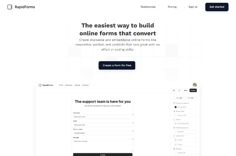 RapidForms: Your shortcut to effective forms. Build and embed custom forms that drive engagement and conversions. User-friendly for developers and non-developers. Member of marsx.dev family Got a question or wanna say hi? I’m on Twitter: @johnrushx