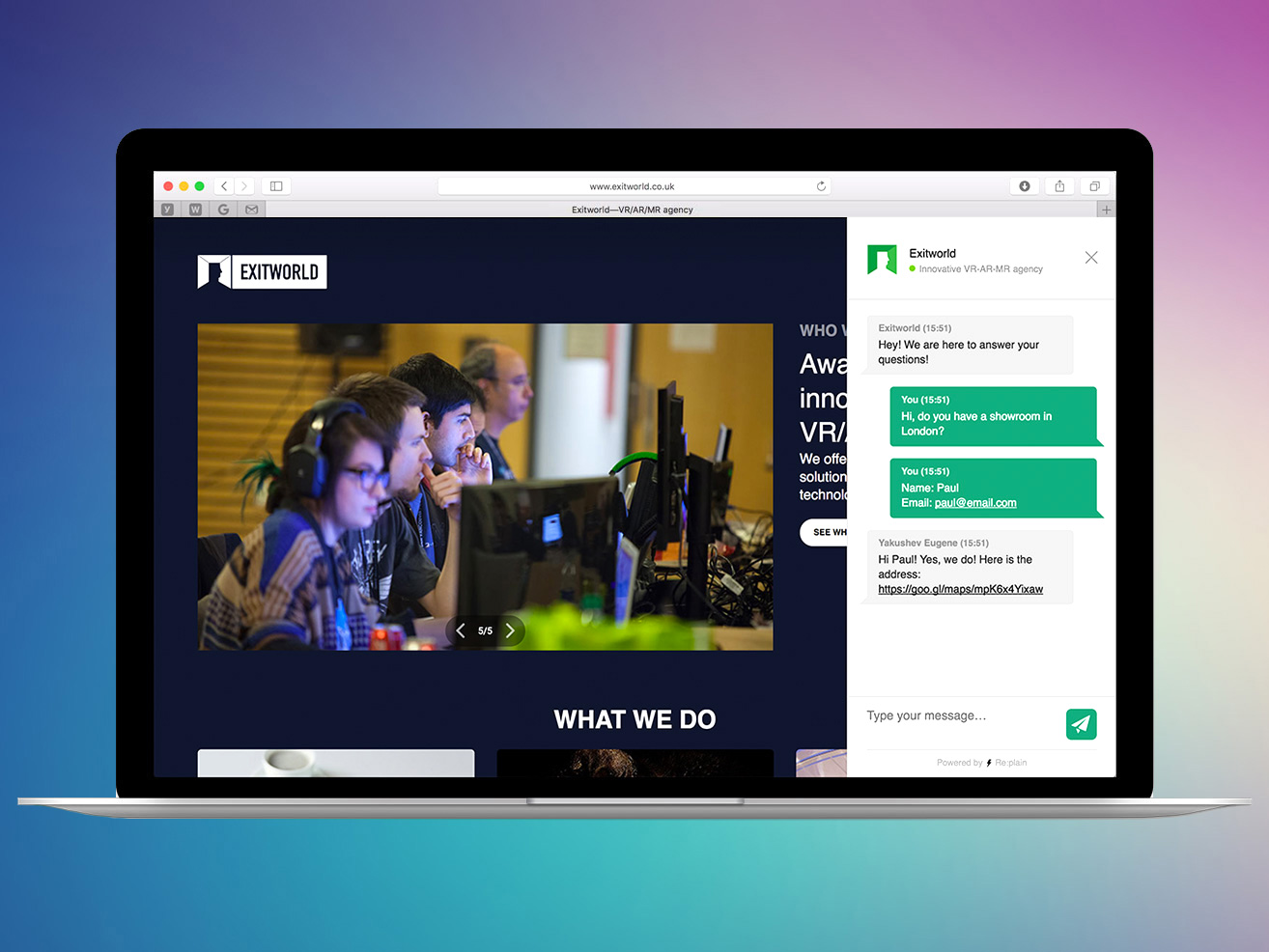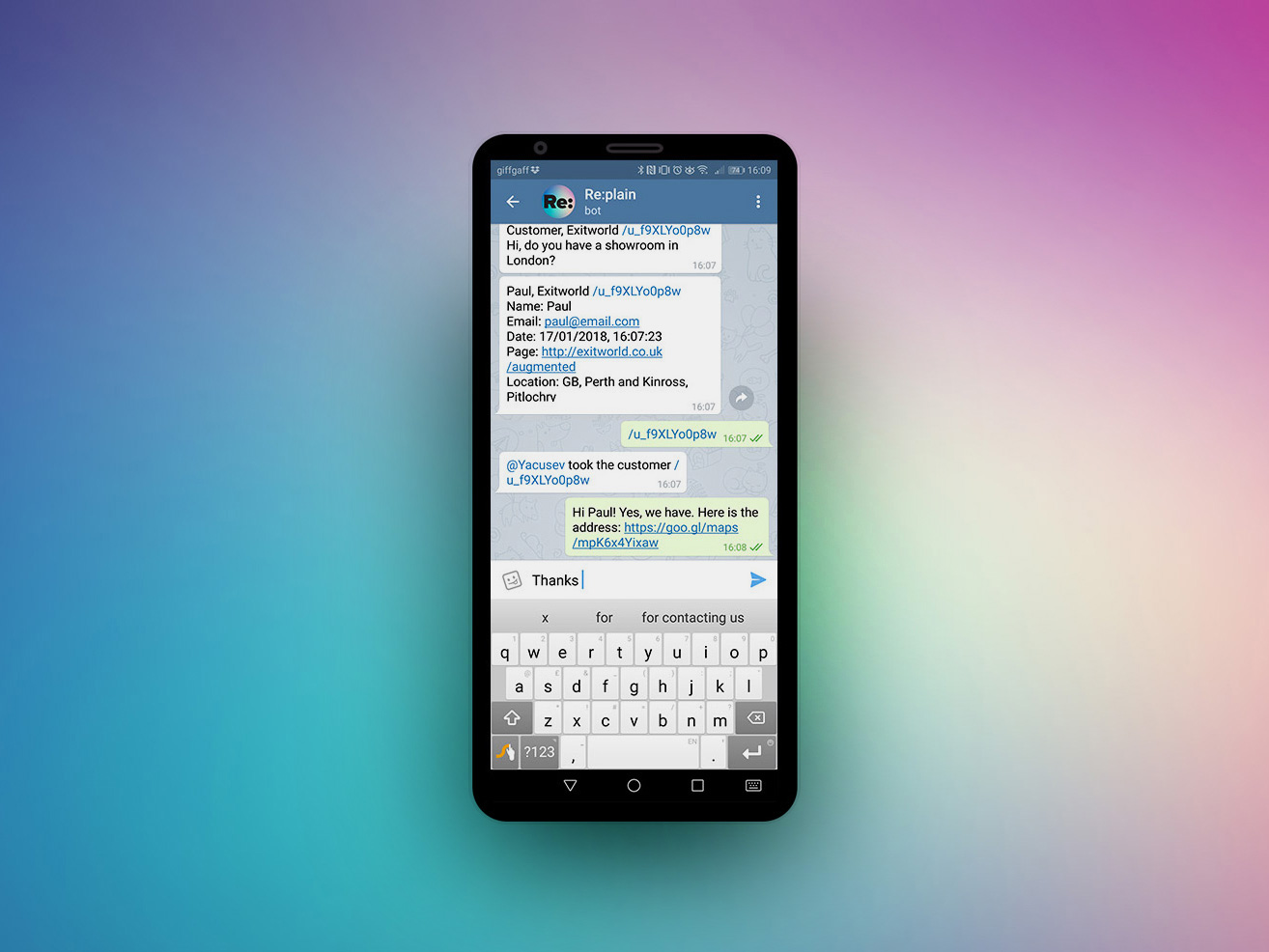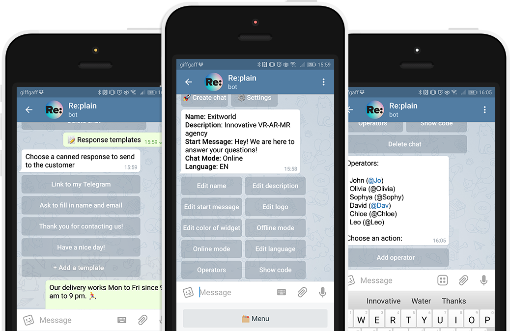 Re:plain perfectly fits for a small teams, who need customers, not data or analytics that you'll never use. It works directly in your Telegram (it's one of the best messengers http://telegram.org ) It's absolutely free, always online, you don't have to install any additional software, go to any website or login somewhere, it just works as one of your friends in the chat-list. And it's multiplatform - even Linux! You can connect unlimited number of agents, you can connect unlimited different websites, it's highly customizable, multilanguage and simple to use.