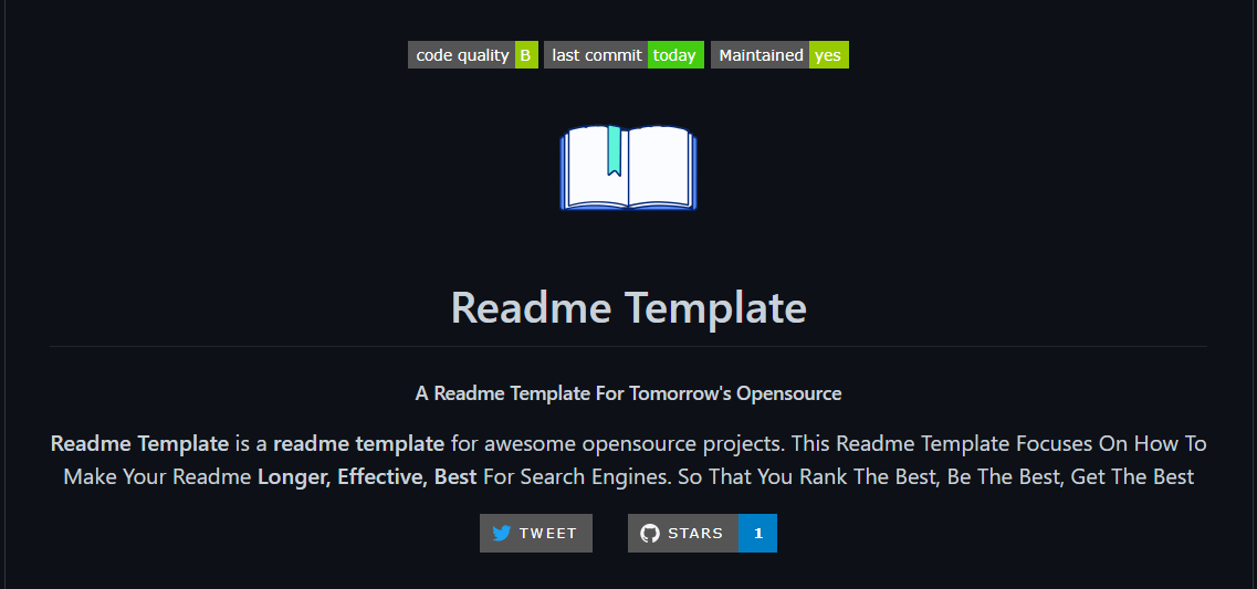 Readme Template is a readme template for awesome opensource projects. This Readme Template Focuses On How To Make Your Readme Longer, Effective, Best For Search Engines. So That You Rank The Best, Be The Best, Get The Best