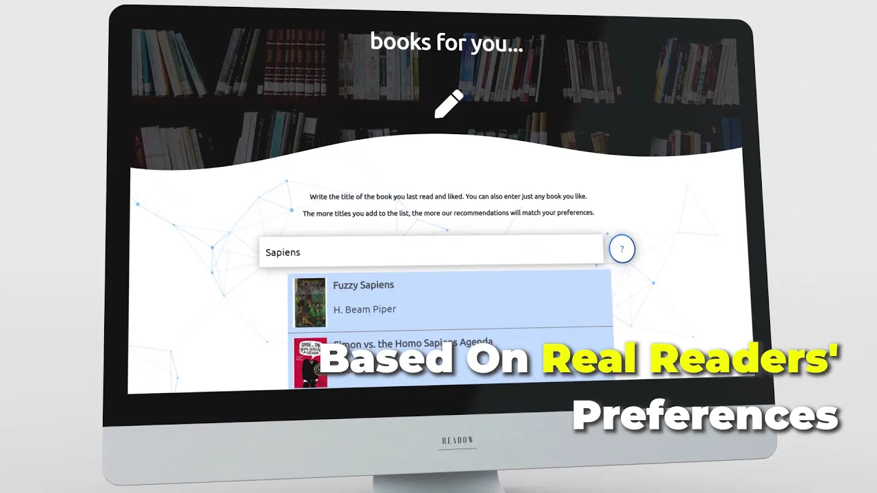 Readow is a service that allows users to receive book recommendations suggested by an AI model. Artificial intelligence analyzes data about the preferences of average book readers and thanks to this AI is able to give unbiased recommendations. The user enters the titles of books he likes and receives book recommendations from Readow out of a million titles. Try it on: https://readow.ai/