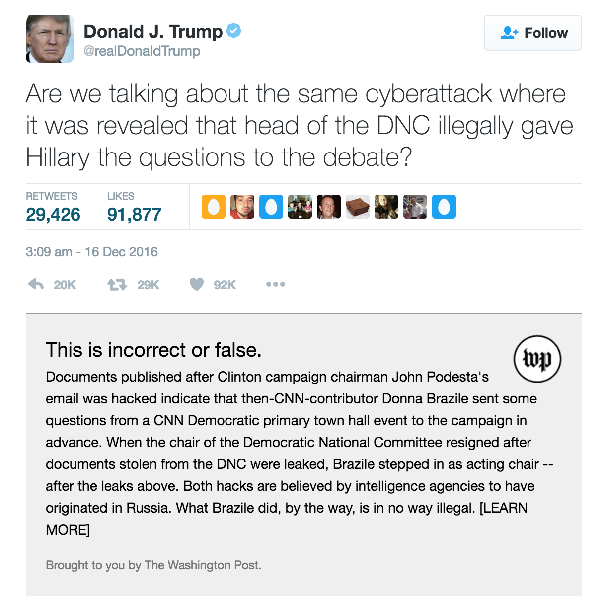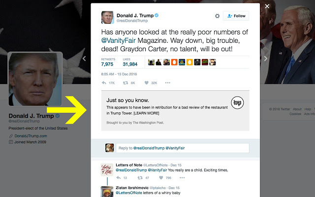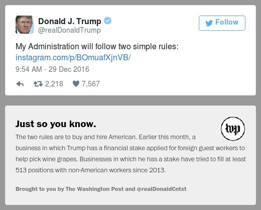 Donald Trump's primary means of communicating with the public is his Twitter account. Unfortunately, his tweets aren't always entirely accurate, by mistake or by design. The Washington Post's Fix team has decided to help ensure that the public receives the most accurate possible information by creating this extension, which will add more context or corrections to things that Trump tweets.