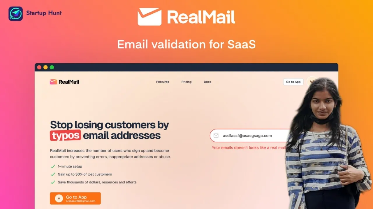 RealMail is the ultimate email validation tool for SaaS. It helps you increase sign-ups and customer retention by preventing errors, inappropriate addresses, and abuse. With real-time validation, customizable settings, and a user-friendly interface.