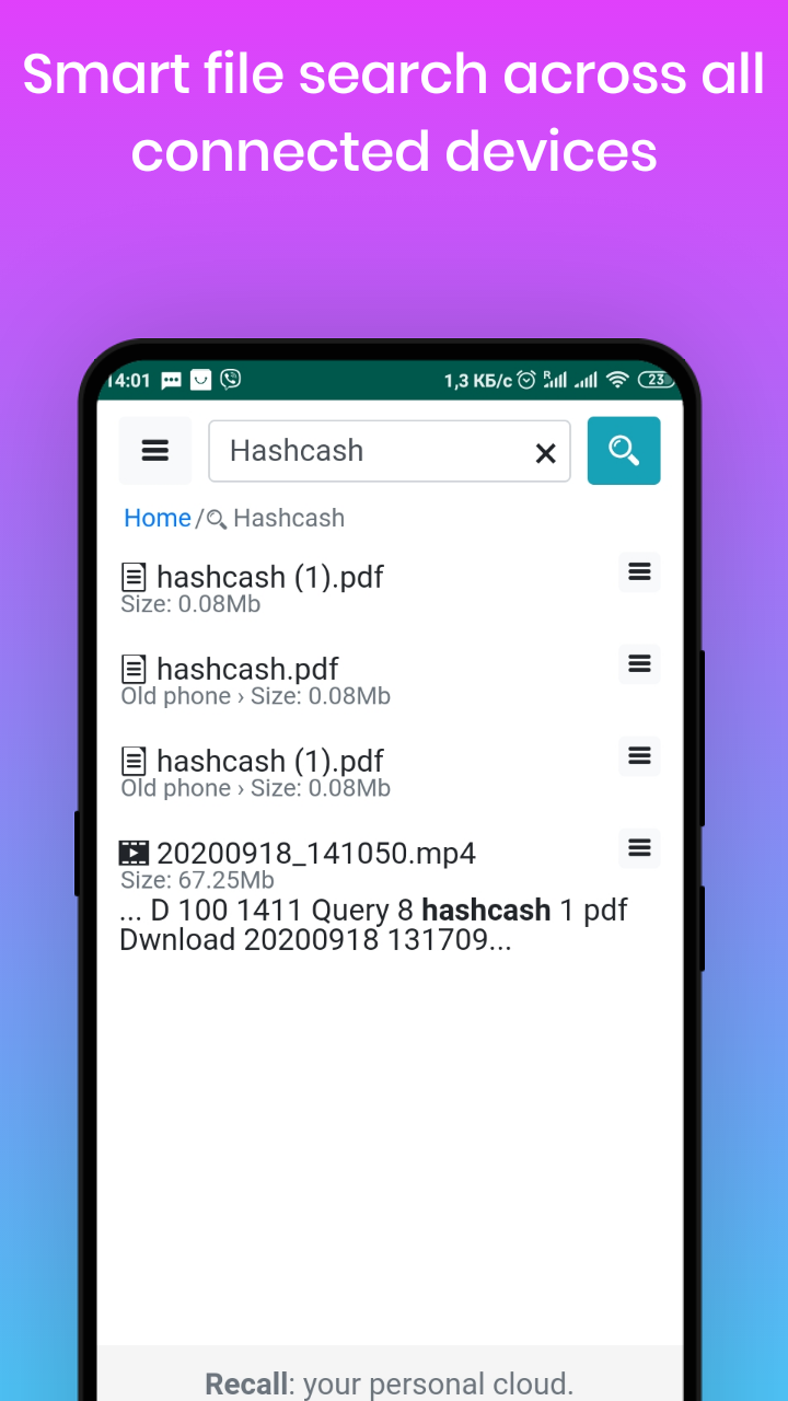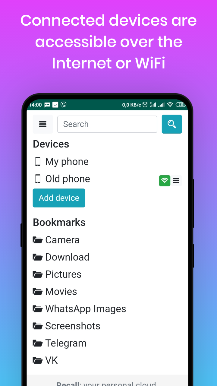 Get access to the files on your Android phone from any web browser. Connect the browser on your PC to your phone to transfer files without limits. Share specific files with a web link that can be sent over email or messengers. Send files over your local WiFi network with faster speed and privacy. No uploading to the cloud, full privacy, end-to-end encrypted connection, high security without passwords. The Recall app is free and has no ads, try it! :)