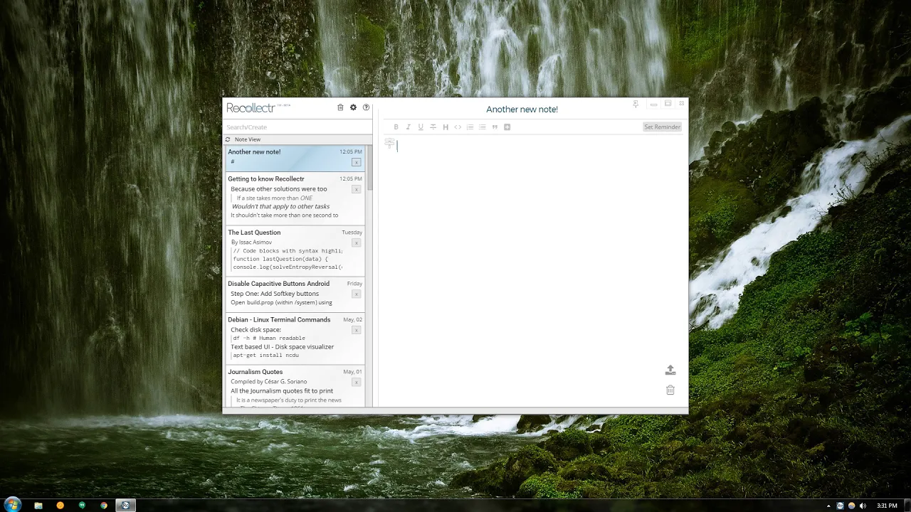 Note-taking shouldn't disrupt your focus, that's why we built Recollectr! Featuring: – Global Hotkey – Search/Create Omnibox – Natural language reminders – Real–time markdown conversion – Keyboard–focused interface – Syntax highlighting – Image support – Window pinning and zooming – Bracket matching & more!