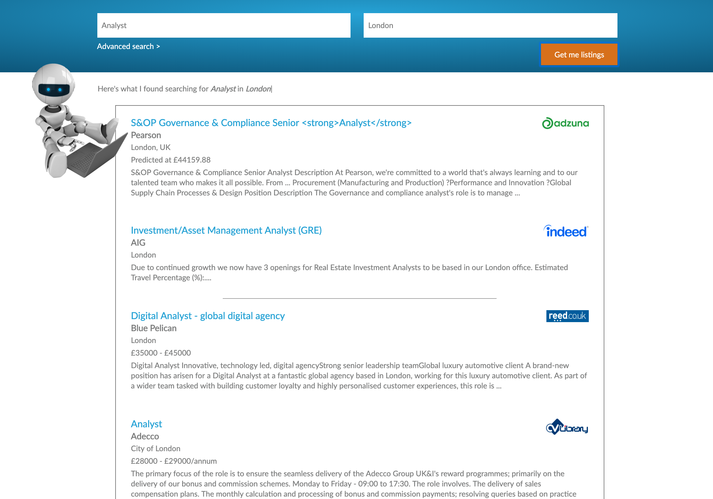 There are a ton of job listing websites out there which is great for choice, but it’s hard to keep up with all of them. RecruitBot is your automated helper. Once you tell it what to look for, it will scour the web’s most popular job listing sites and aggregate them into a single list of potential jobs. Let RecruitBot do the work for you. RecruitBot was inspired by a desire to improve the online job searching experience. We aim to provide a representative view of the job market in one place. It is not another job board, but rather an aggregation of all other job boards.
