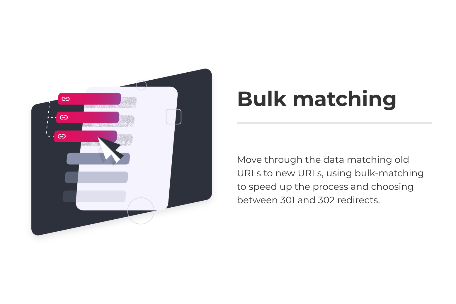 A URL redirect platform engineered for fast paced digital and SEO agencies. Whether you’re rebuilding a site from the ground up or re-architecting an existing site, Redirectly’s meticulously designed features and unmatched functionality can help you create a complete an accurate URL redirect list, in a matter of minutes.