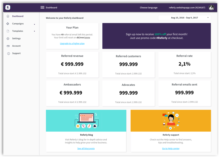 Referly is all-in-one referral marketing software that enables e-commerce merchants to easily set up and manage their own automated referral marketing (refer-a-friend) programs. Referly provides positive word-of-mouth advertising. This leads to increased traffic to the web store, improved brand reputation and higher sales. The Merchant has the opportunity to link his webshop to Referly. From the Referly backend, the Merchant can create one or more refer-a-friend campaigns, and people participate in these campaigns.