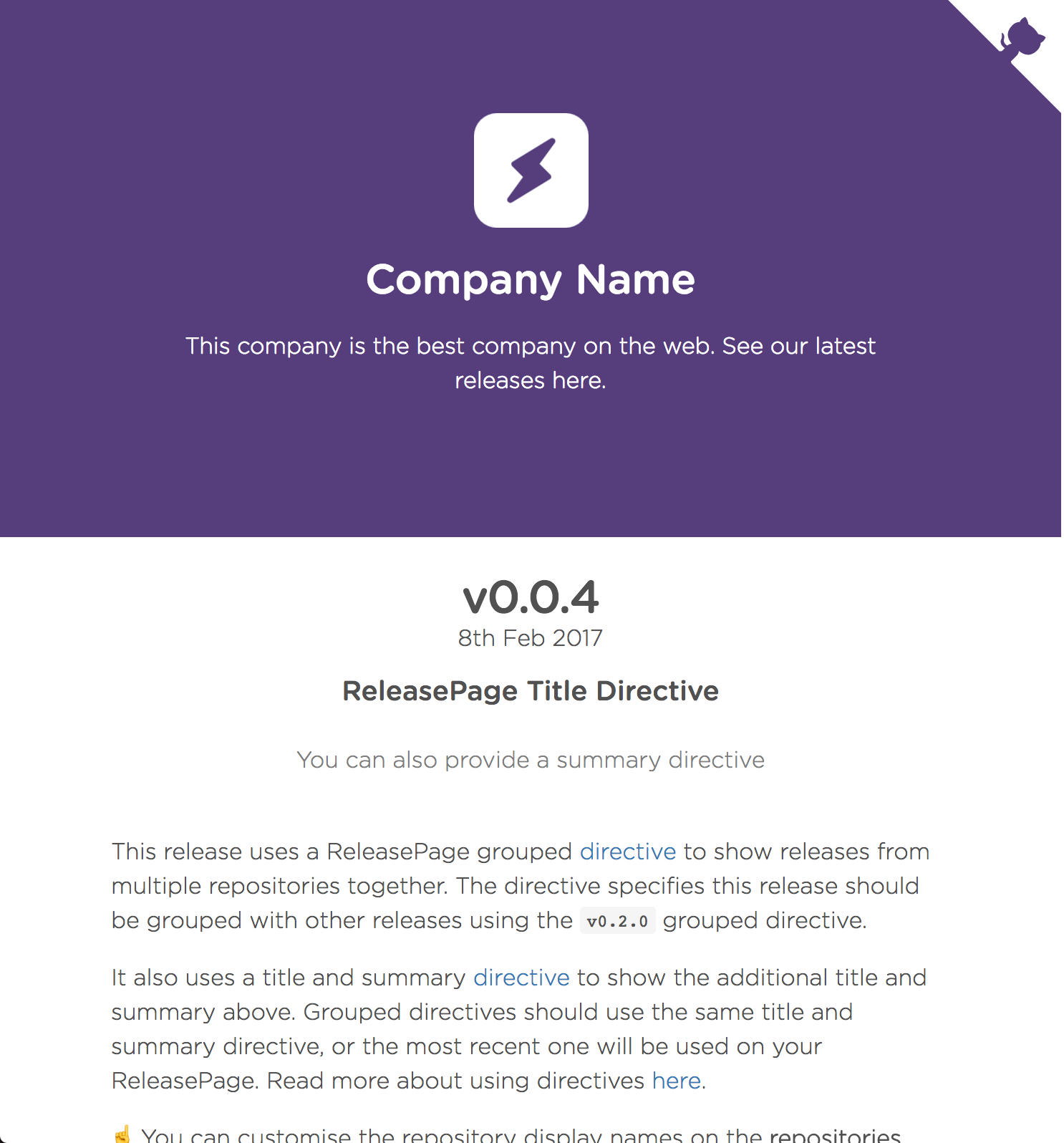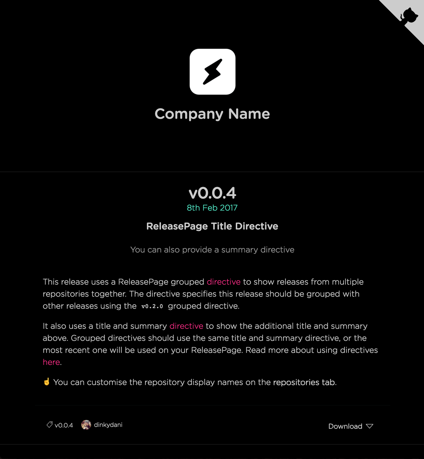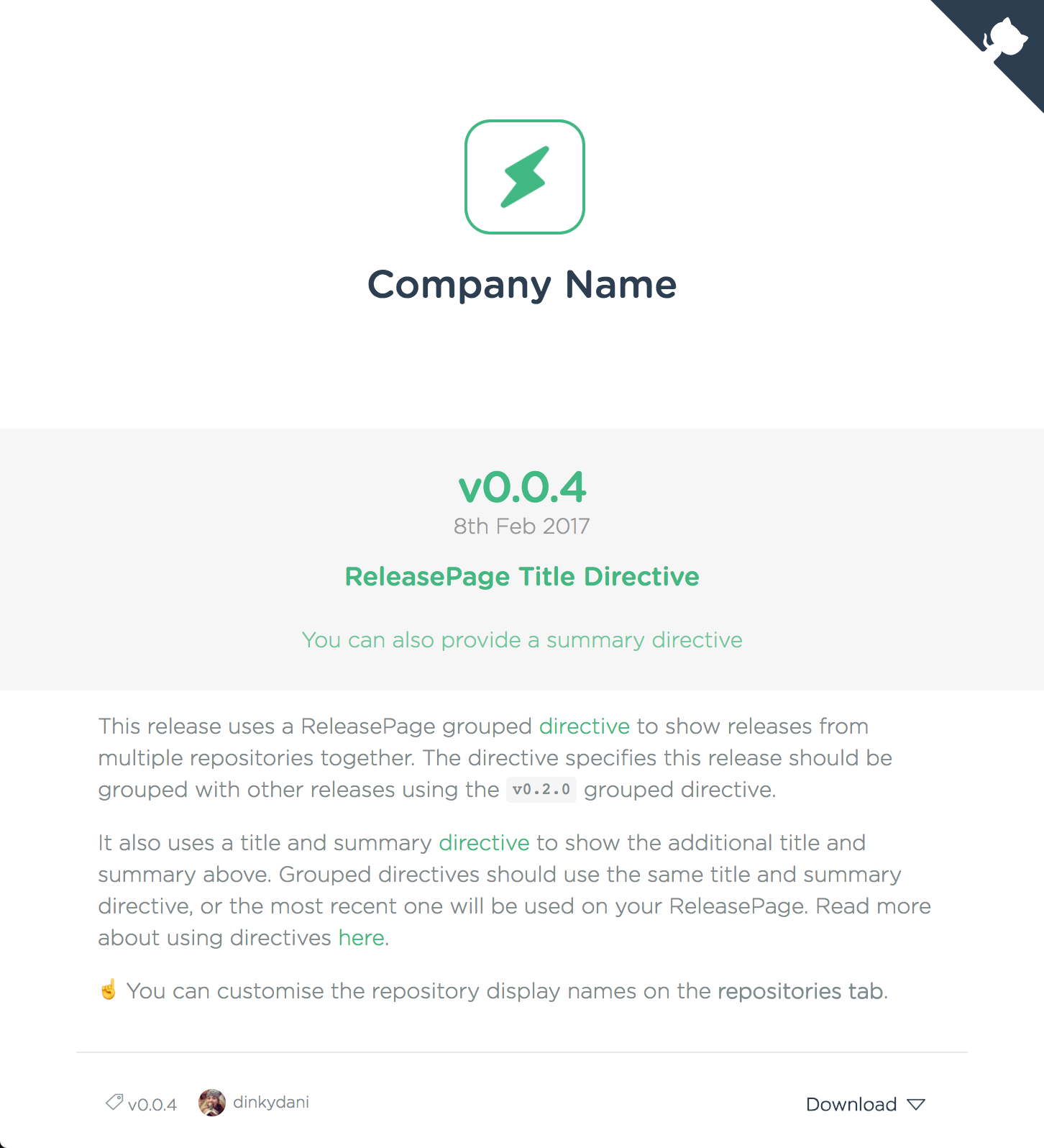 ReleasePage allows you to create a client-facing changelog for your app. Powered by GitHub tags and releases, you can keep the technical details alongside your source code as nature intended, and also providing a beautiful place for your users to stay up-to-date with any changes. ReleasePage stays up-to-date with your releases on GitHub and even lets you combine multiple GitHub repositories into a single release page, meaning that your users always know where to find your latest releases.